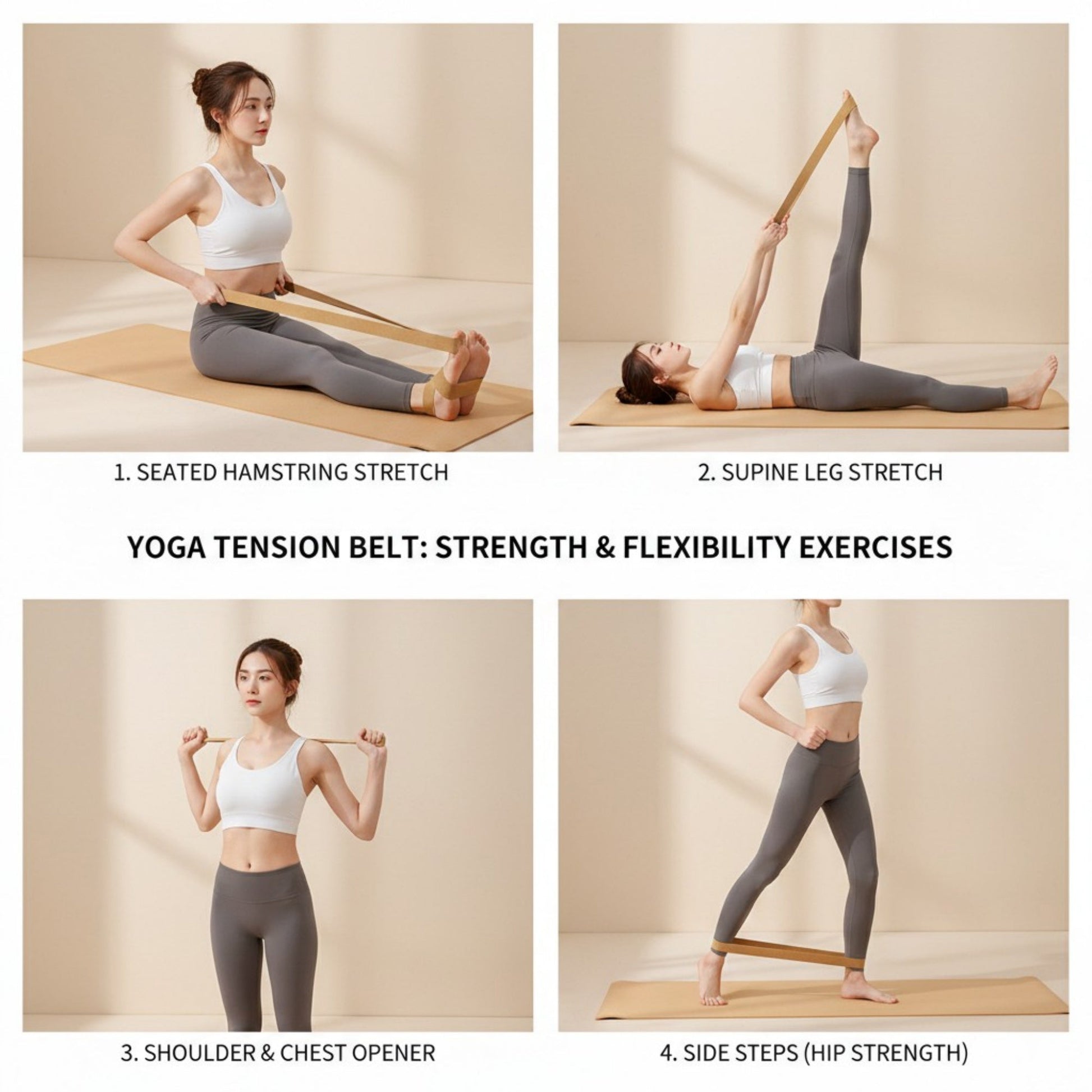 The Anna-Kaci Yoga Stretch Strap 2 Pack is designed to support controlled stretching and flexibility routines using a non elastic poly cotton webbing construction. Each strap is made from a durable polyester cotton blend and features an adjustable metal buckle to help maintain stable positioning during stretches. The fixed length design provides consistent support without elastic stretch or resistance. This 2-piece set offers a simple and reusable accessory for yoga, pilates, warm-ups, and daily flexibility exercises.