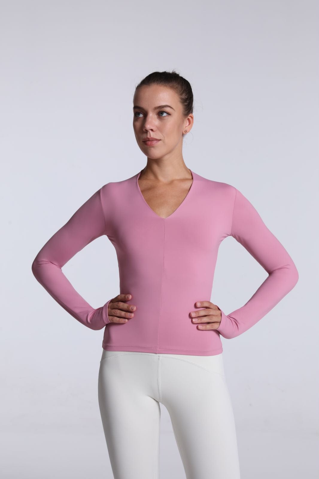 The Anna-Kaci shirt is detailed with long sleeves and thumbholes. Features a V-Shaped neckline and a full length that goes past the waist. Pair this buttery soft, light-weight, quick-drying workout top with your favorite pair of leggings and sneakers for an easy morning run outfit.