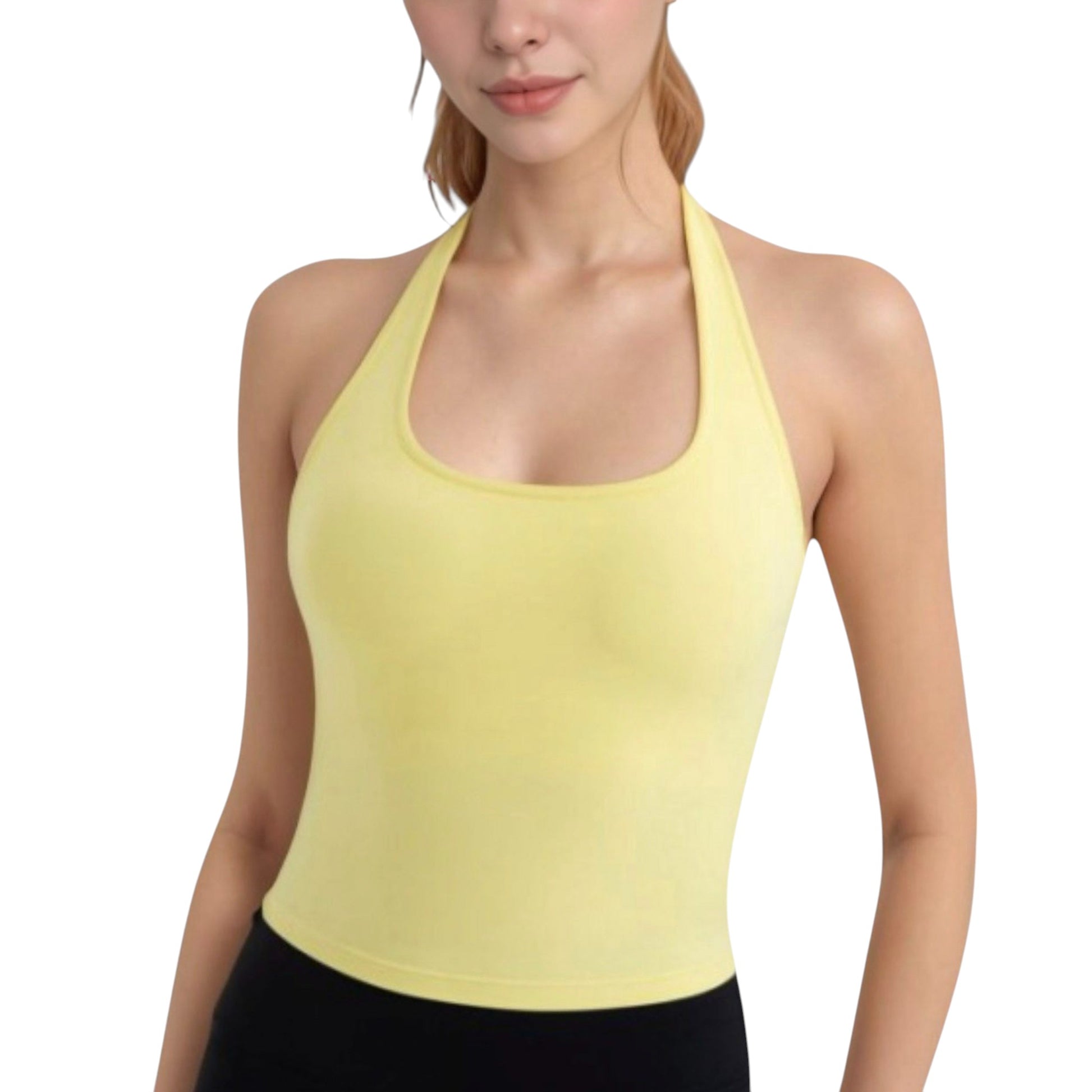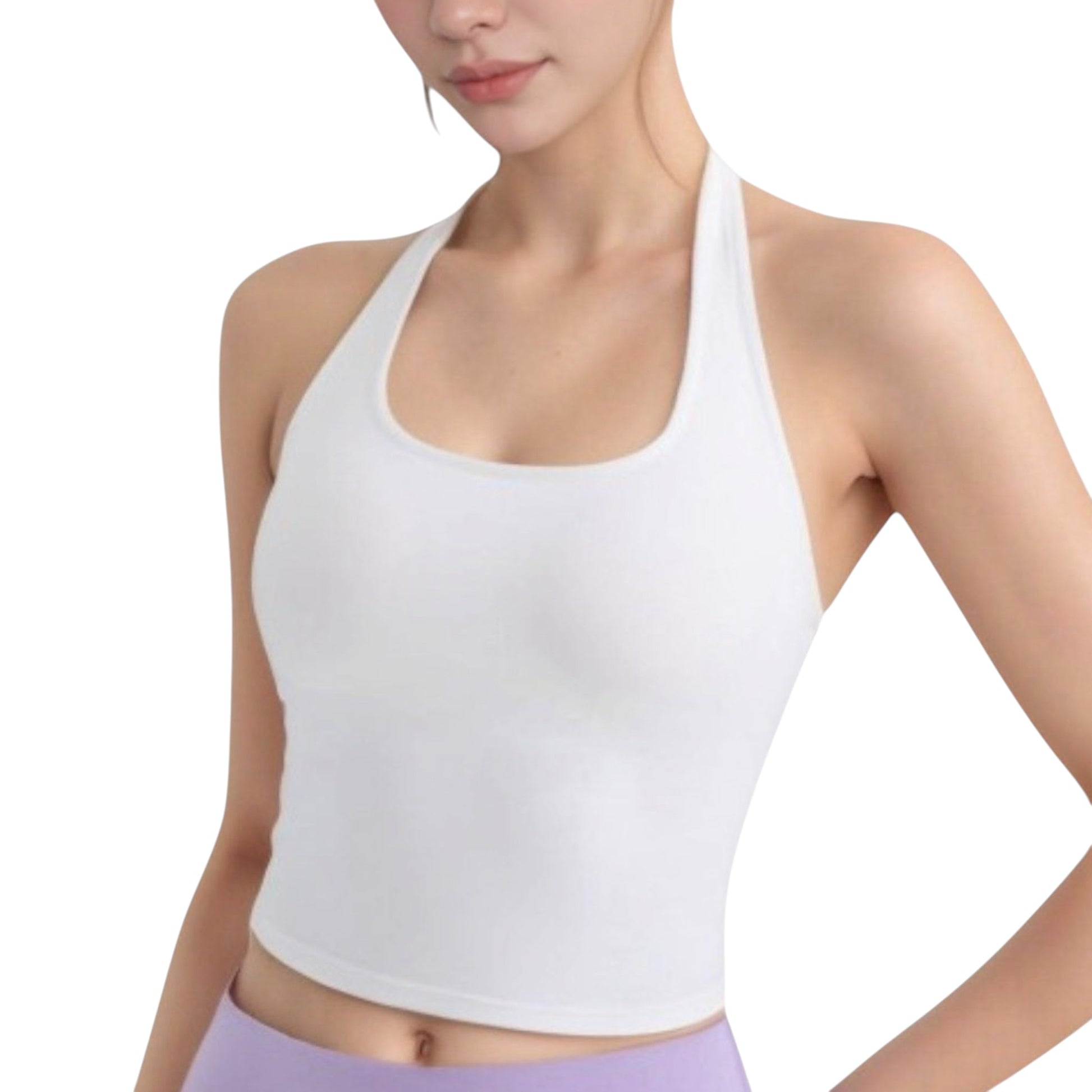 Women's Halter Neck Cropped Tank Top with Built-In Bra and Stretch Fabric for Workout or Casual Wear