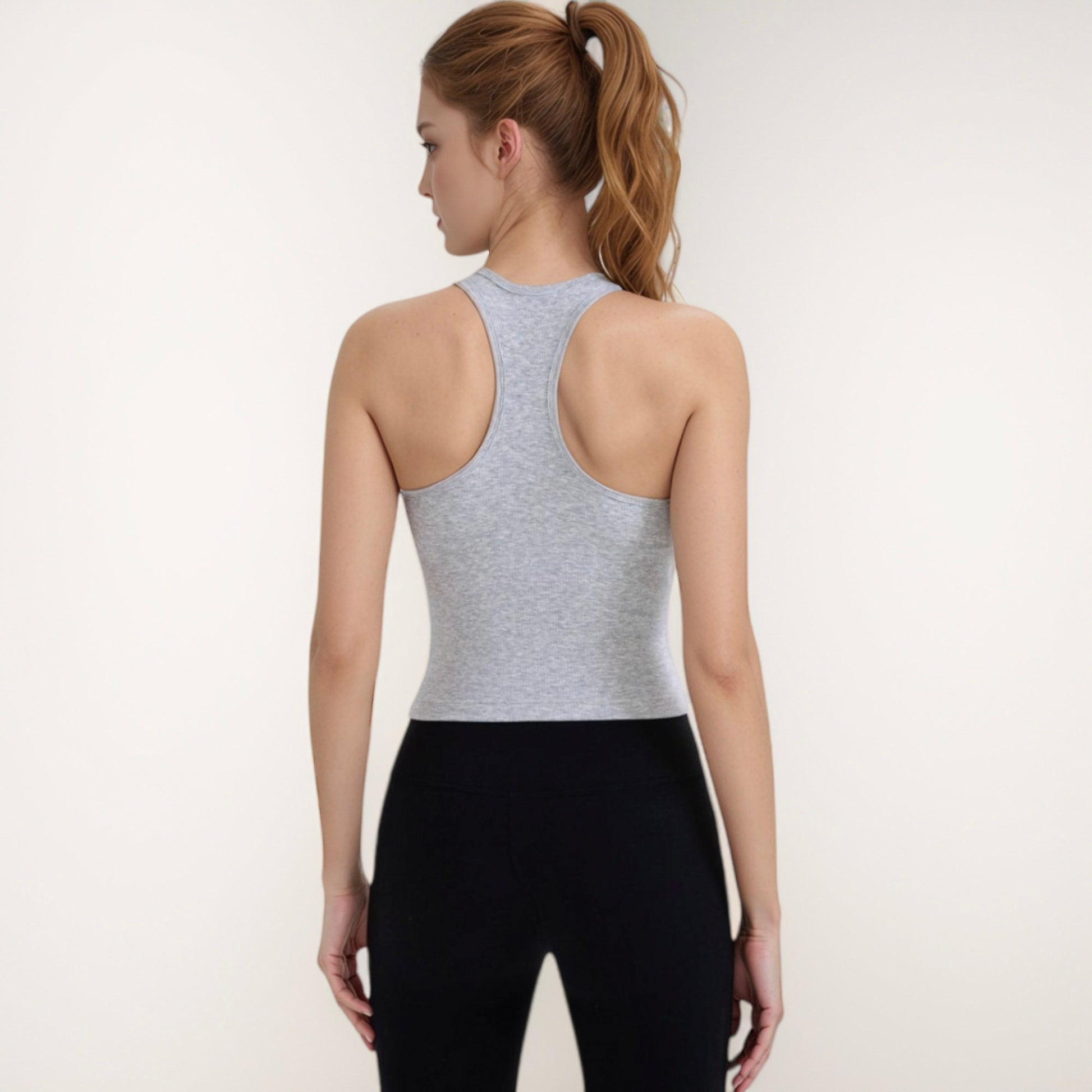 This women's ribbed crop tank top features a high neckline and a body-hugging silhouette, offering both style and support. The soft ribbed texture enhances comfort while providing a sleek, flattering look. Ideal for layering or wearing alone, this top transitions seamlessly from workouts to everyday wear. A versatile staple for your active or casual wardrobe.
