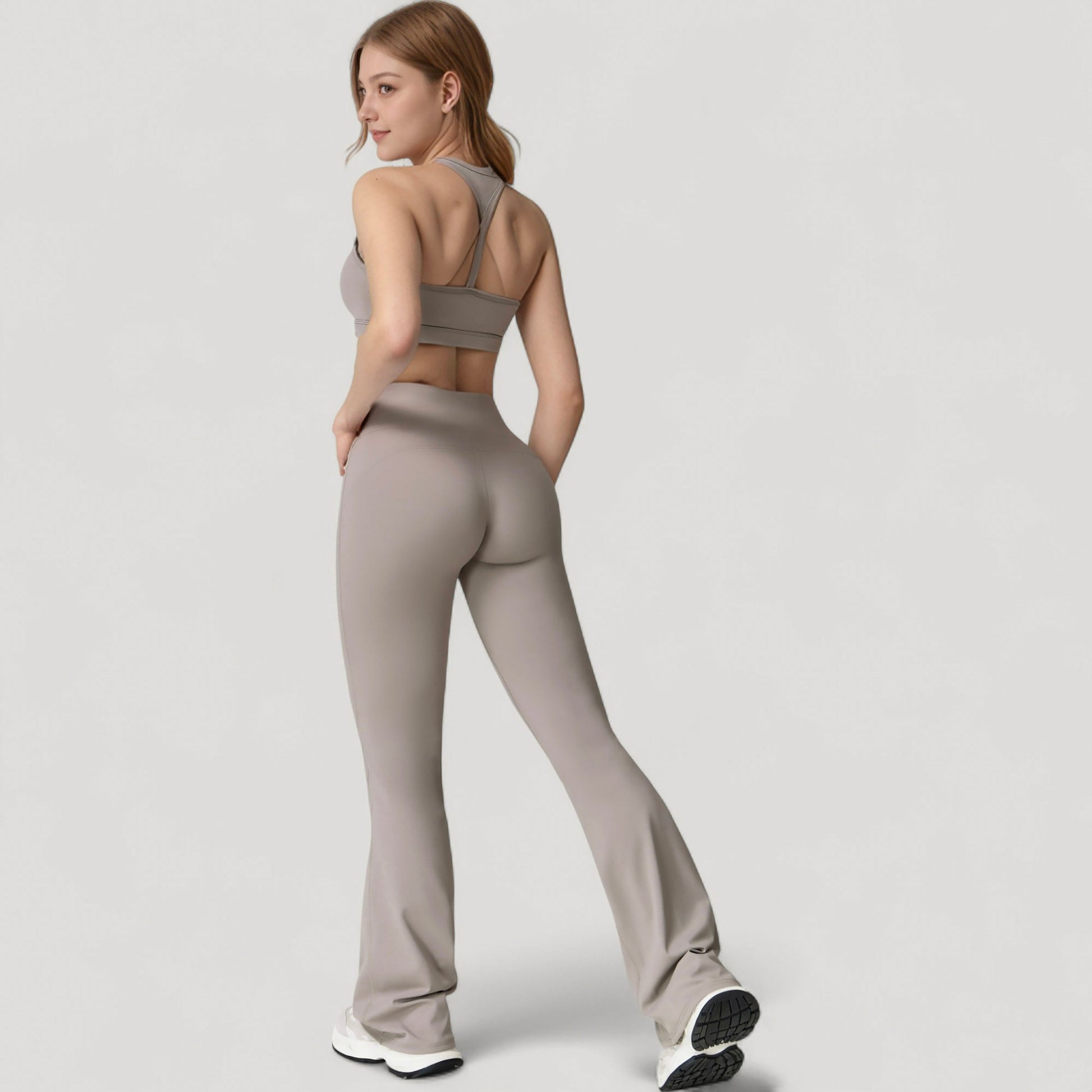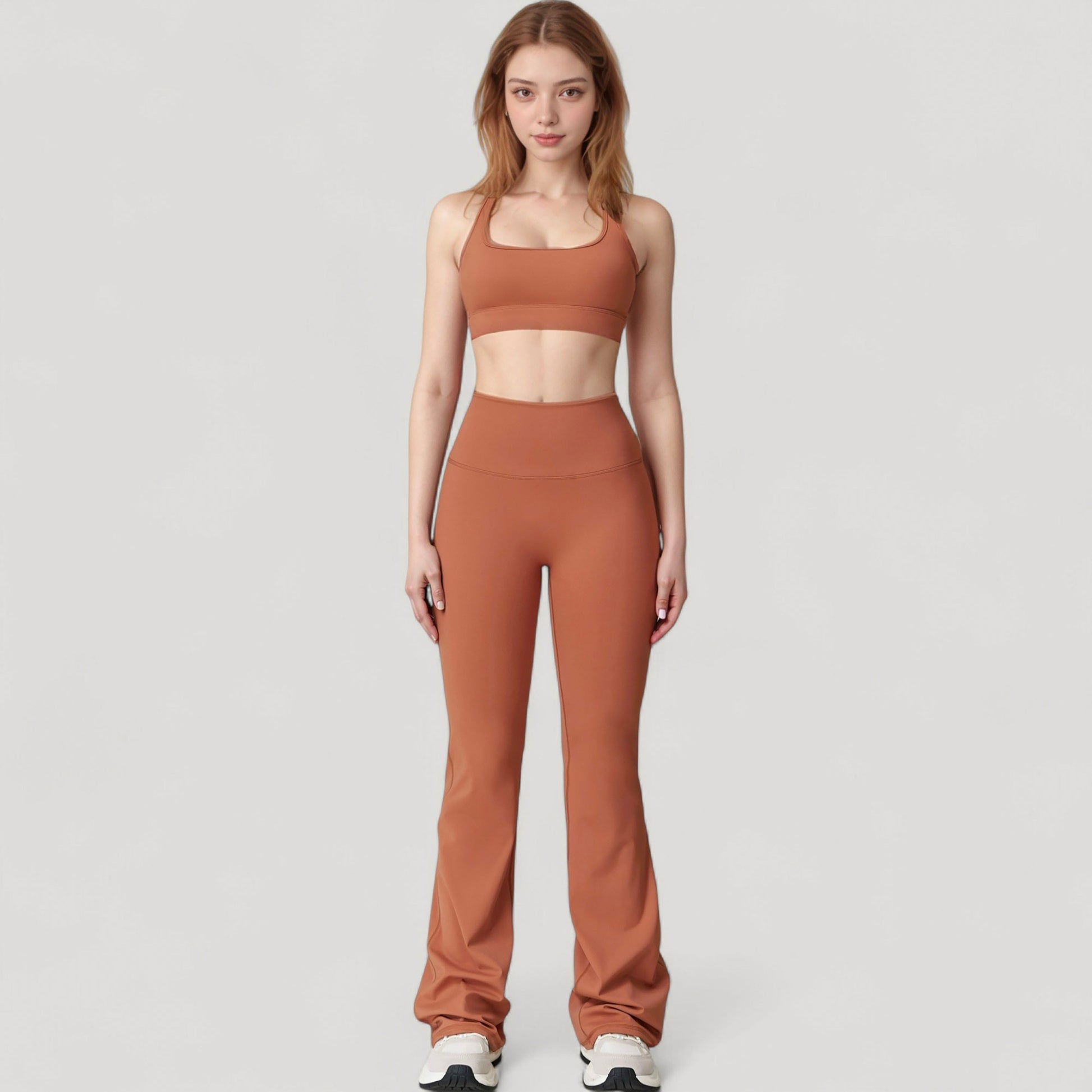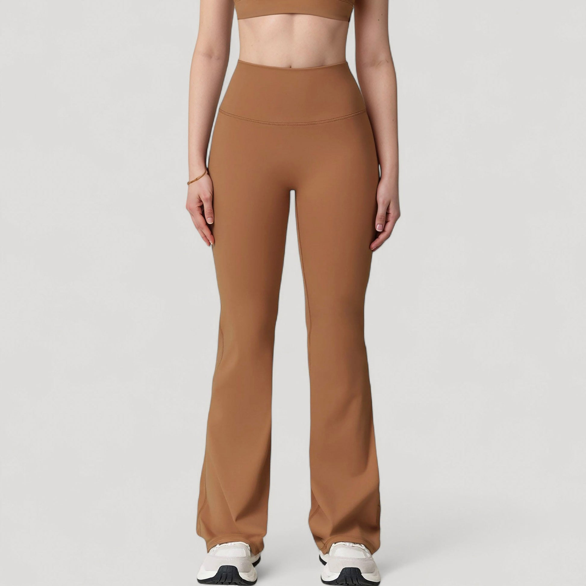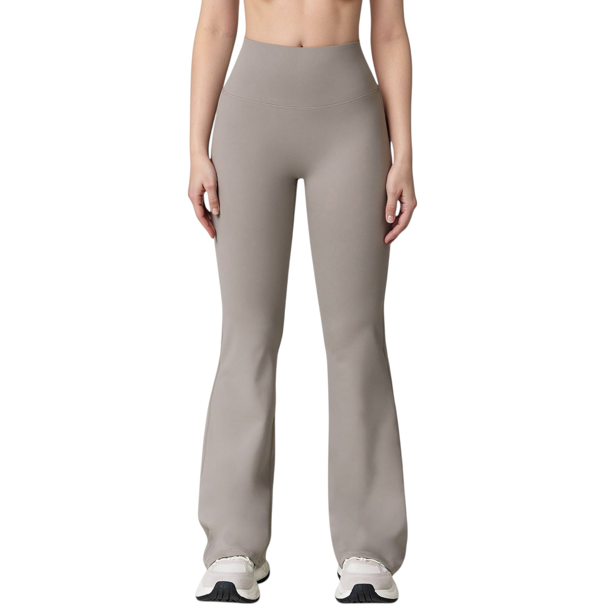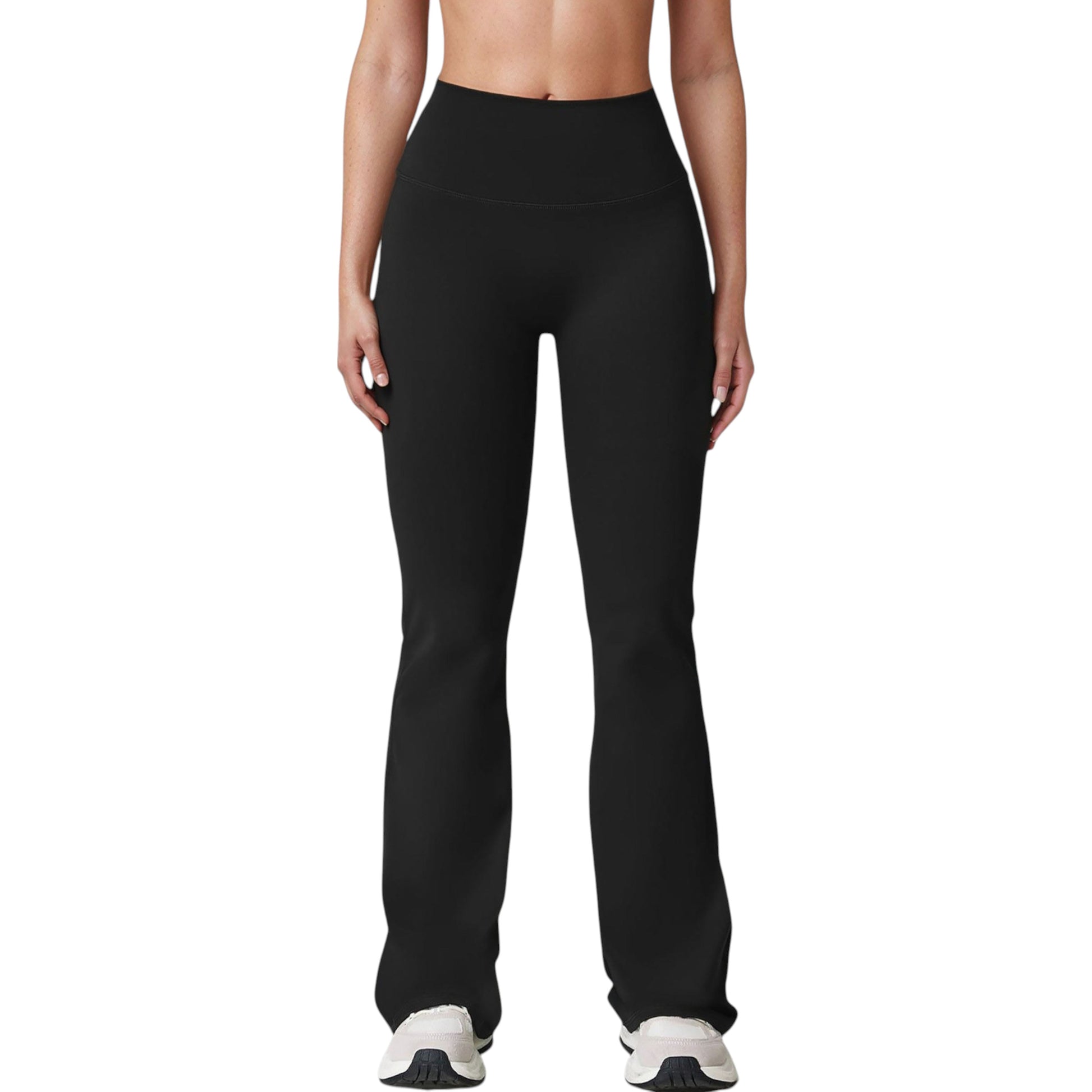 High Waist Flared Leg Stretch Pants Smooth Fabric Seamless Waistband Active Lounge Bottoms