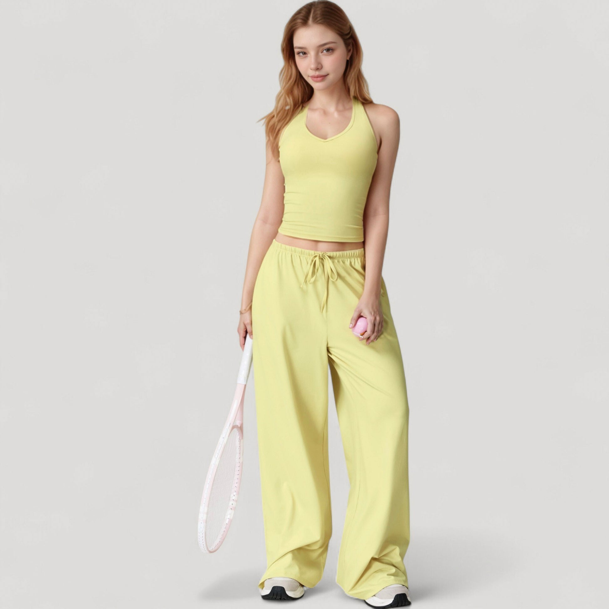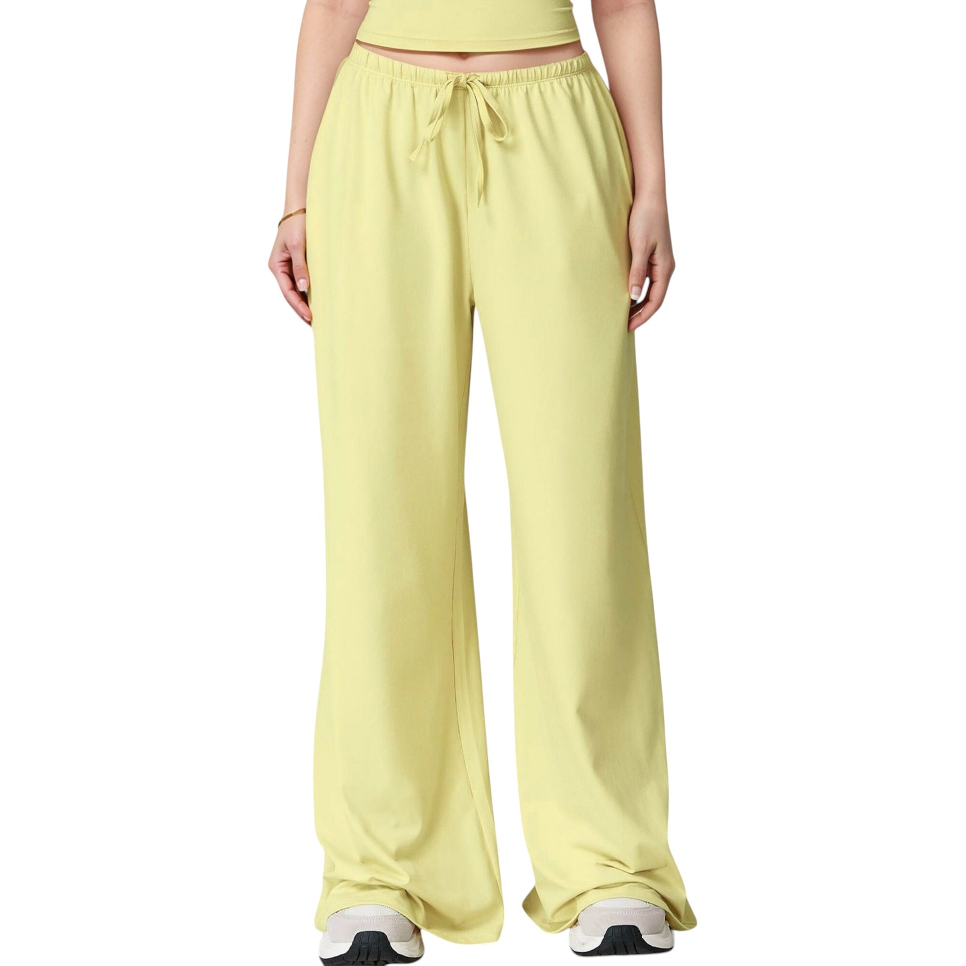 These women's wide leg lounge pants feature a relaxed silhouette and an adjustable drawstring waist for a customized fit. Crafted from soft, breathable fabric, they offer effortless movement and all-day comfort whether you're relaxing at home or stepping out. The full-length cut adds a modern, flowy touch to your casual wardrobe. Perfect to pair with crop tops or oversized tees for a laid-back yet stylish look.