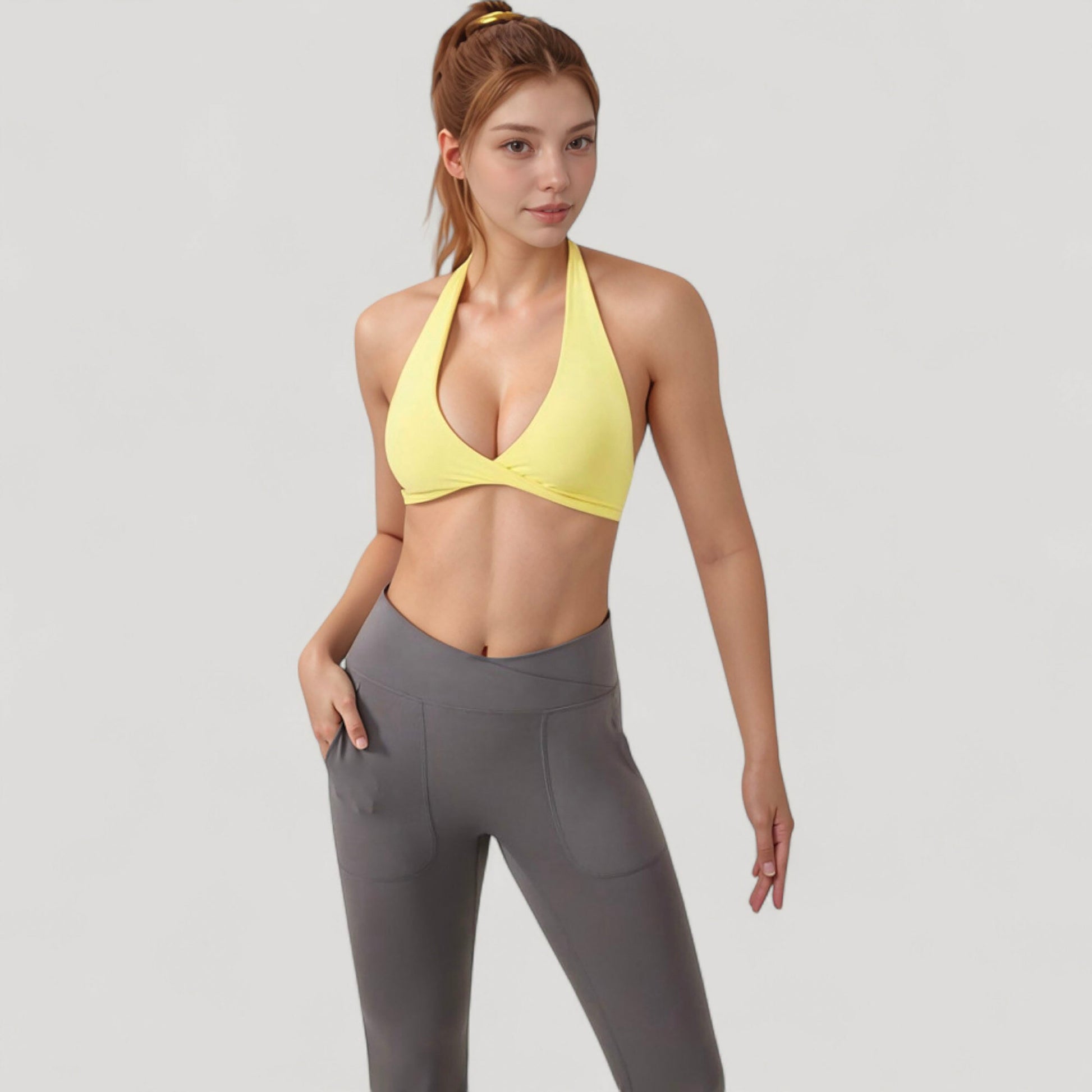 Halter Neck Sports Bra with Ruched Front Detail Low Impact Stretch Fabric Removable Padding