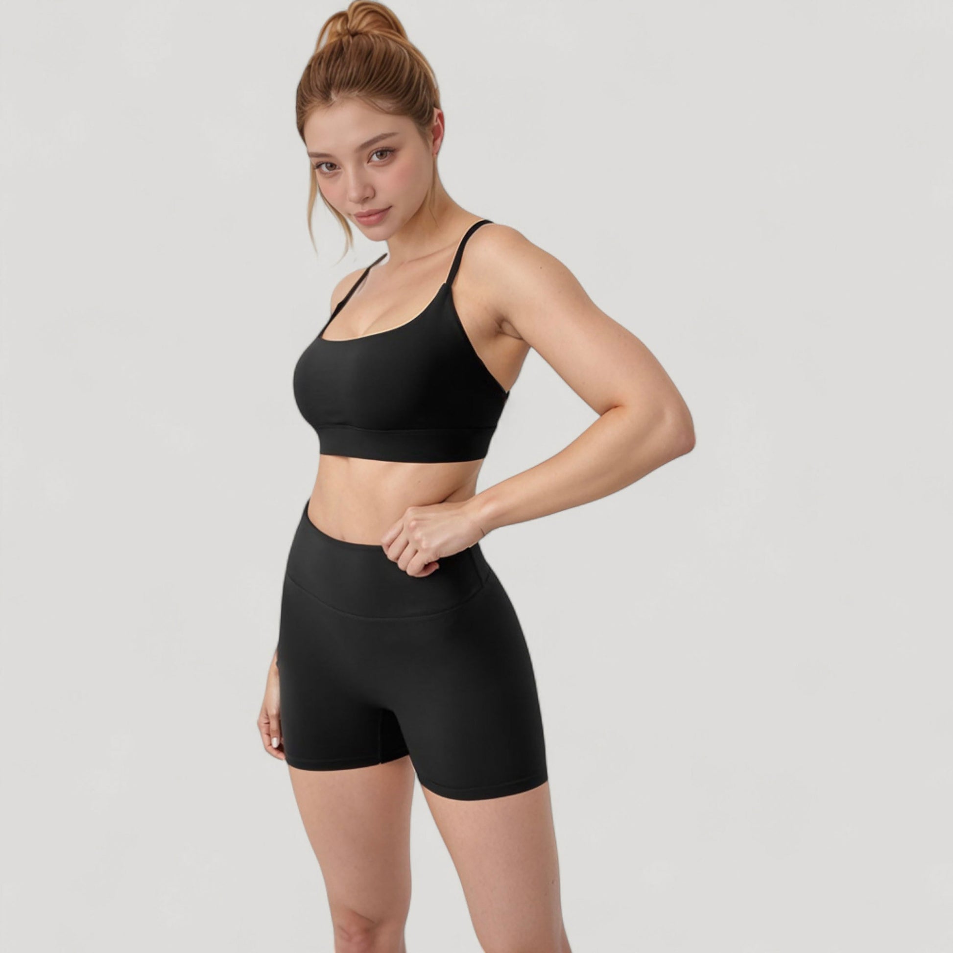 The Anna-Kaci Women's Scoop Neck Sports Bra offers a sleek, minimalist silhouette with smooth stretch fabric and adjustable spaghetti straps. Designed for comfort and ease of movement, it features removable padding for optional coverage and light support. Ideal for low-impact workouts or casual wear, this bra delivers both functionality and a flattering look. Soft and supportive, it¡¯s perfect for layering or wearing on its own.