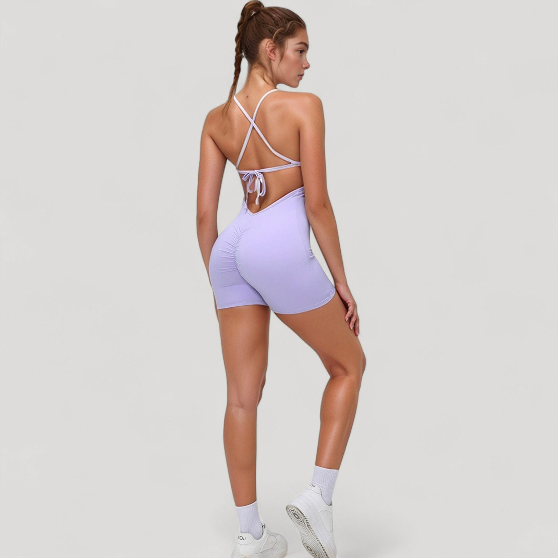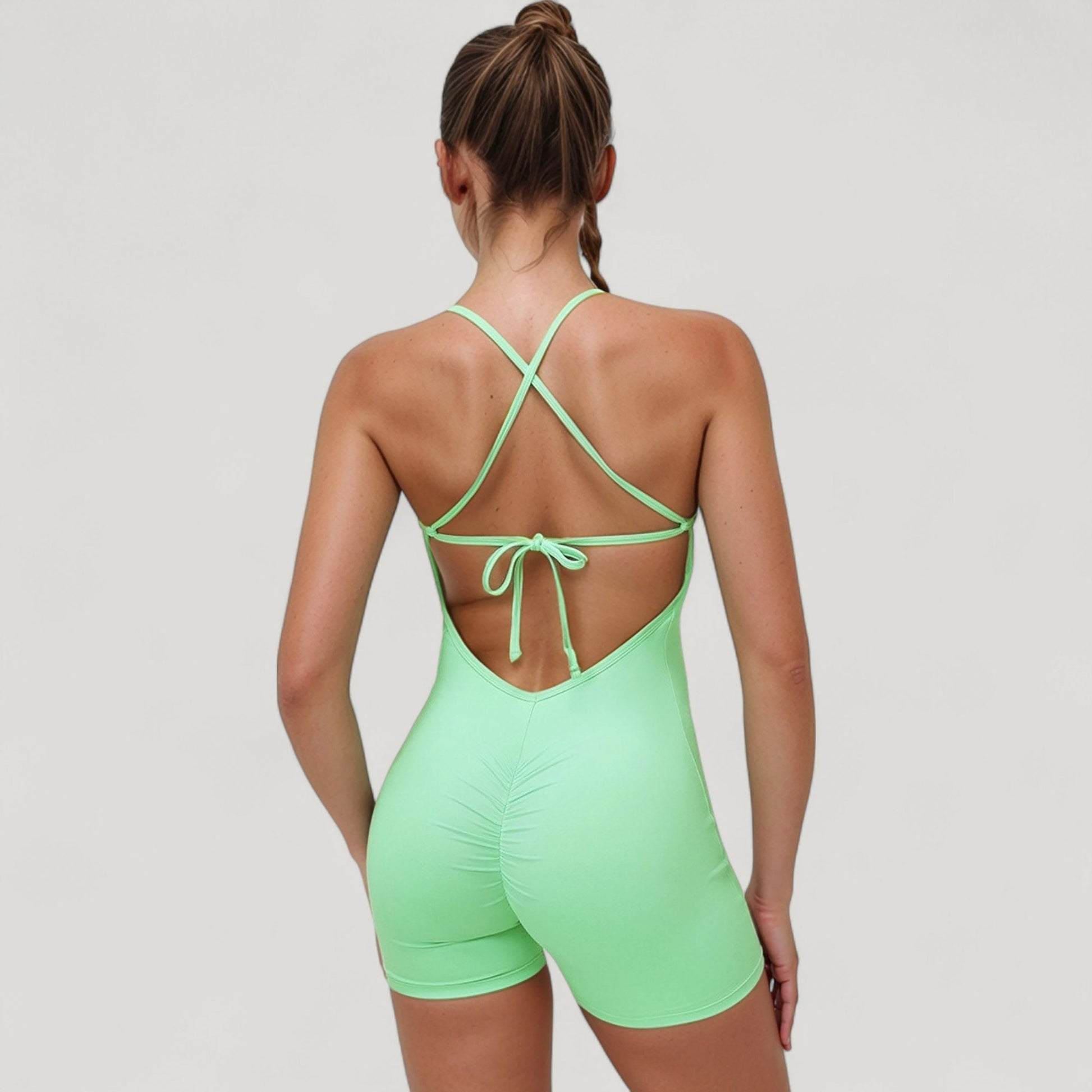 Spaghetti Strap Active Romper with Scoop Neckline and Fitted Stretch Fabric