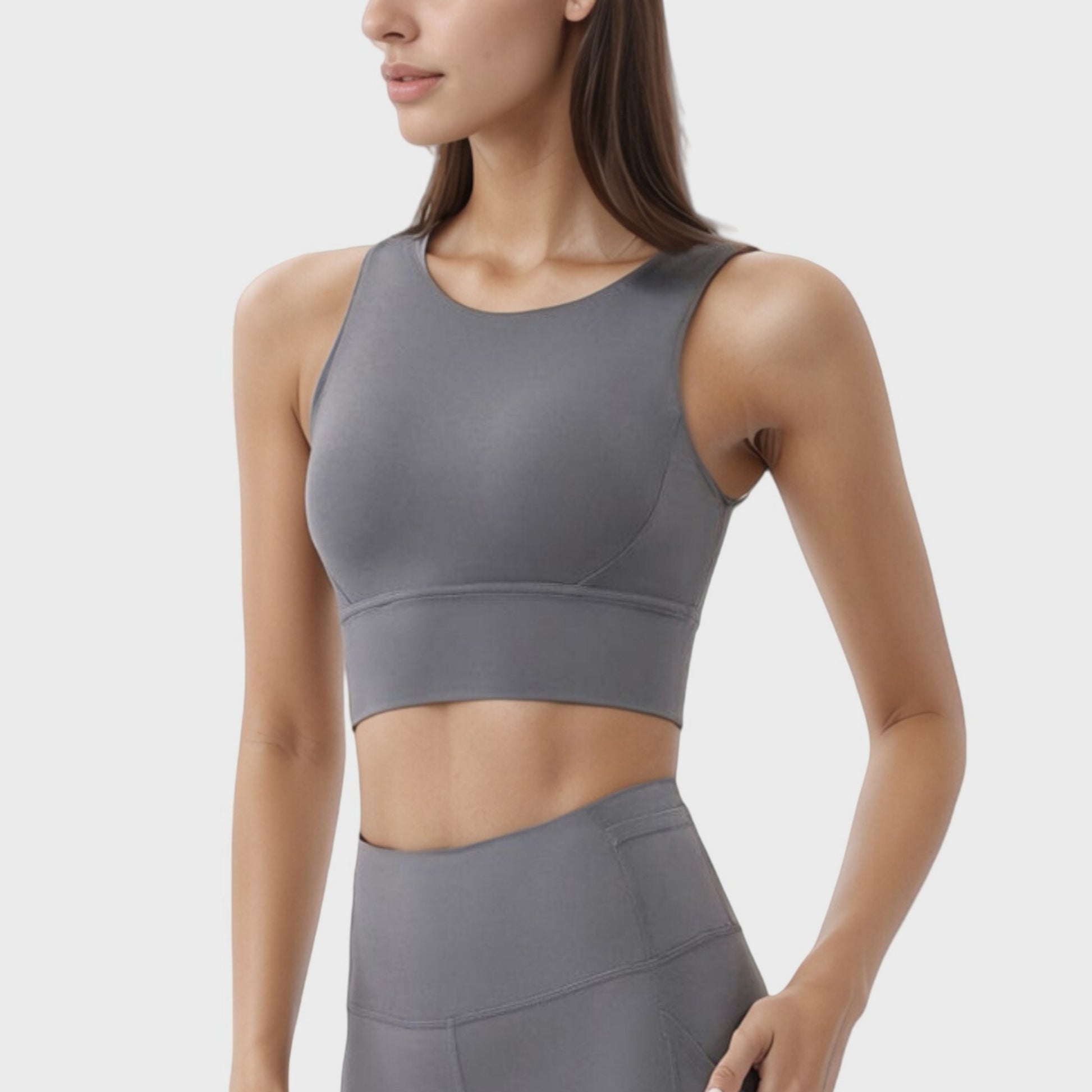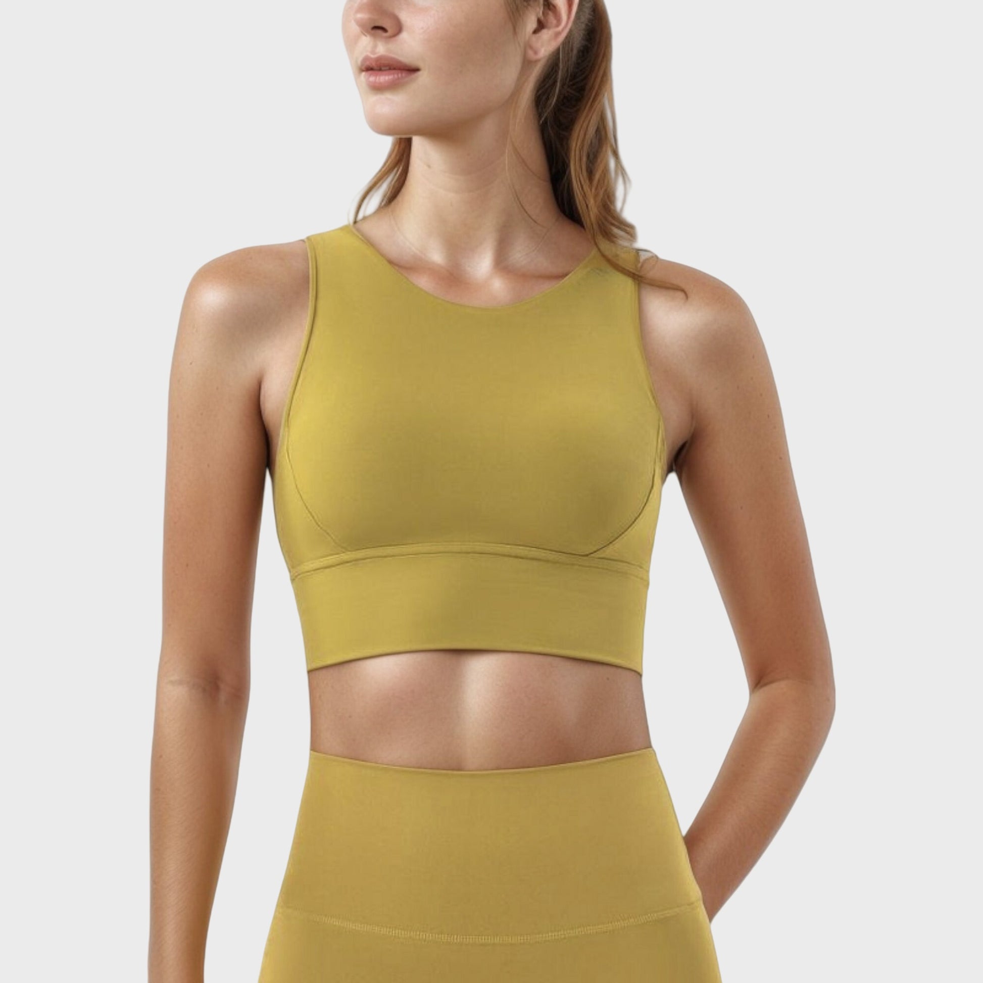High Neck Longline Sports Bra with Wide Straps and Keyhole Back for Stylish Medium Support