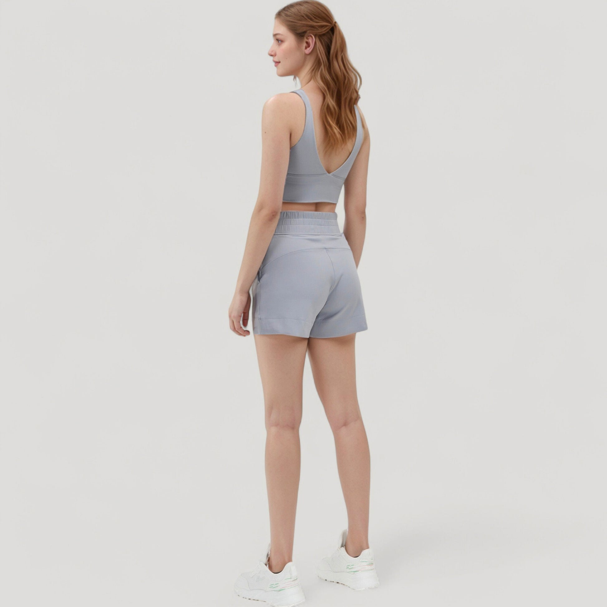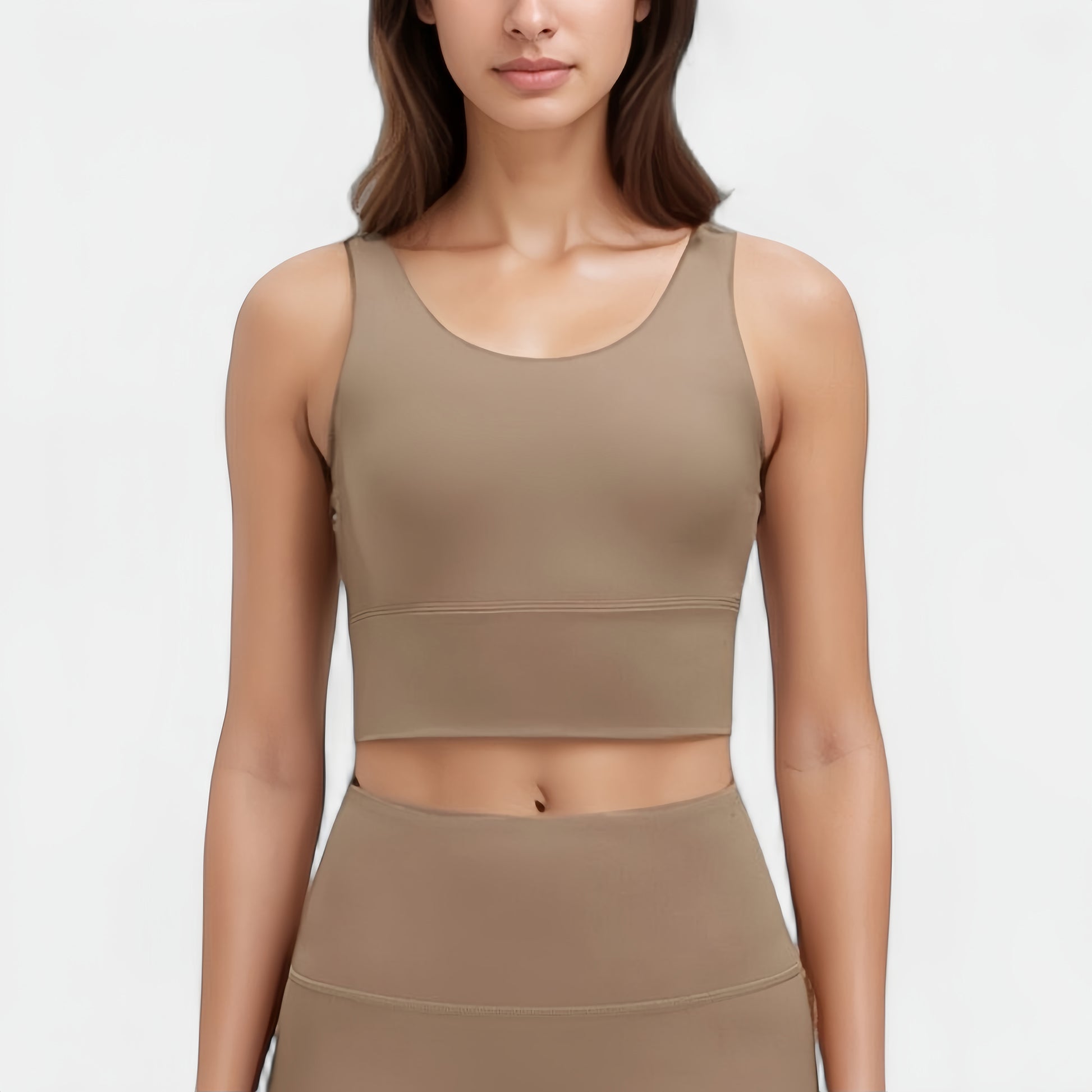 Scoop Neck Longline Sports Bra with Wide Shoulder Straps and Deep V-Back Design