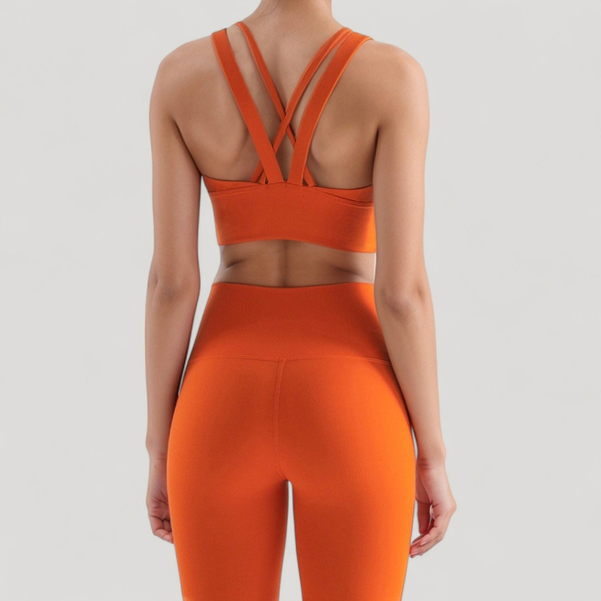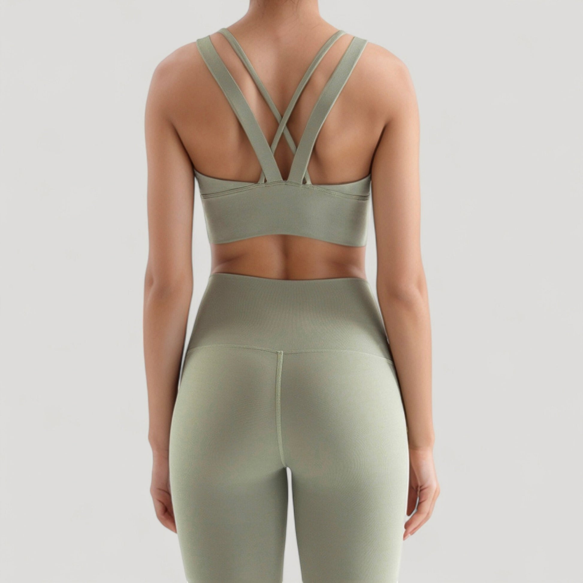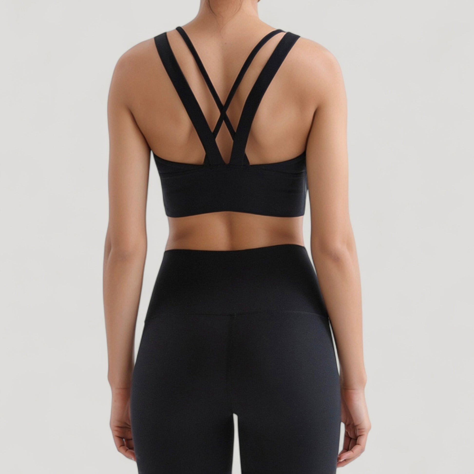 Strappy V Neck Sports Bra Top with Wide Shoulder Bands and Soft Stretch Fabric