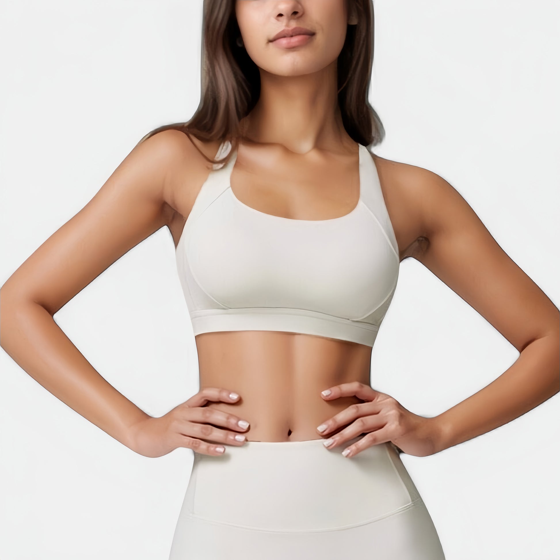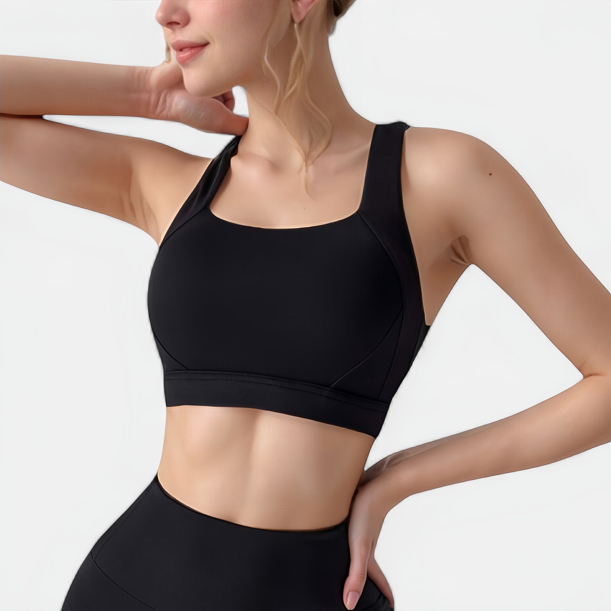 Wide Strap Square Neck Sports Bra Top with Sculpted Seam Detail and Cropped Fit