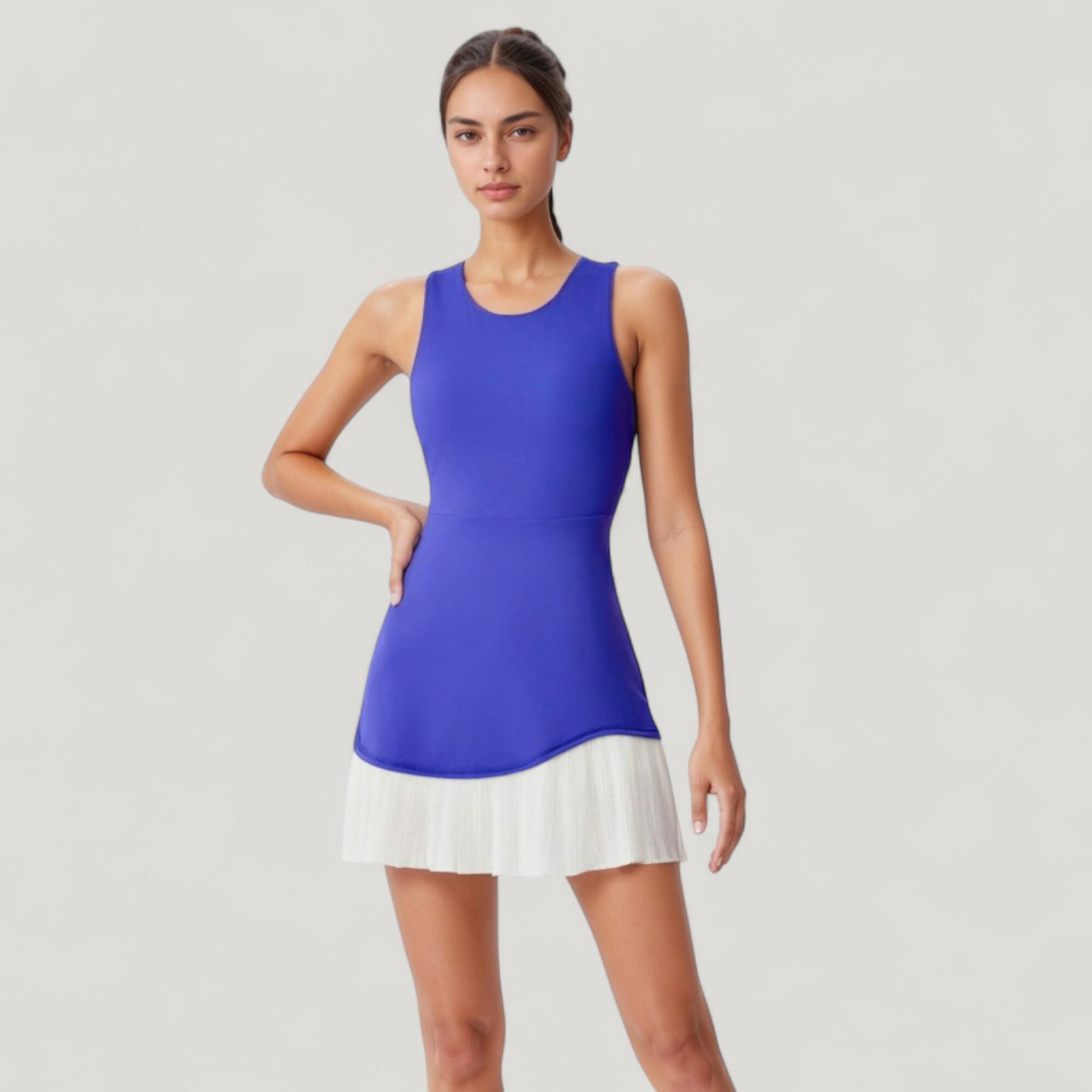 Sleeveless Tennis Dress with Scoop Neck Fitted Bodice and Contrast Pleated Hem