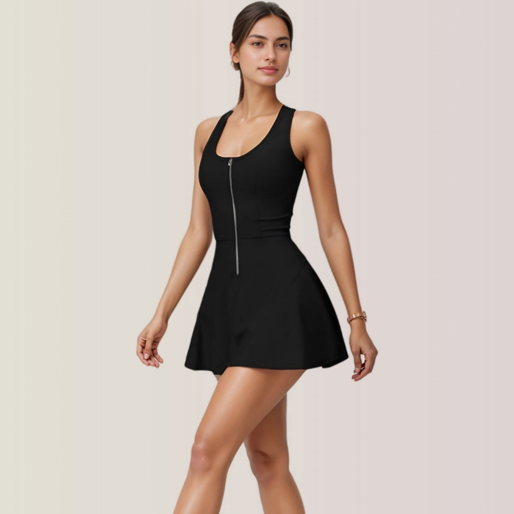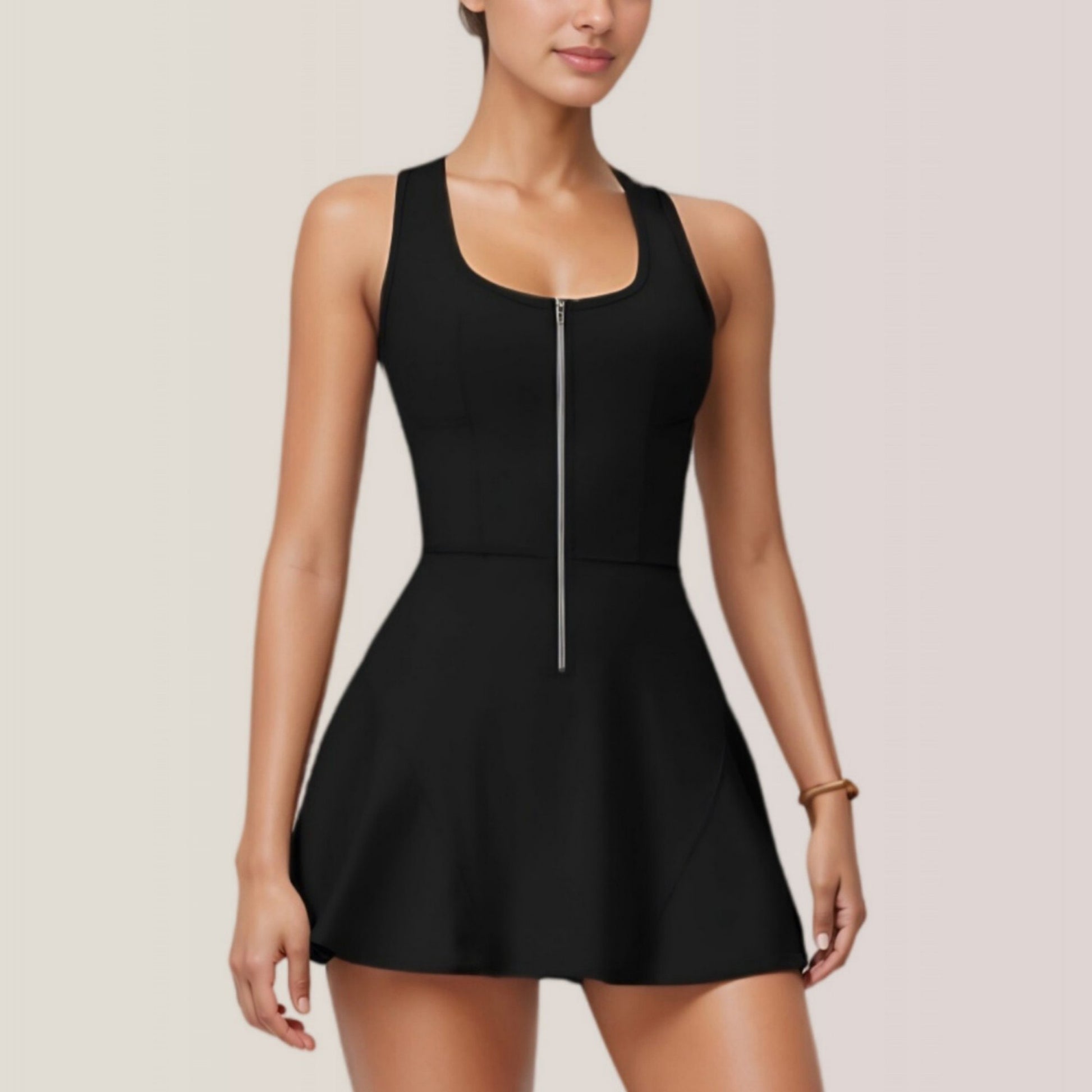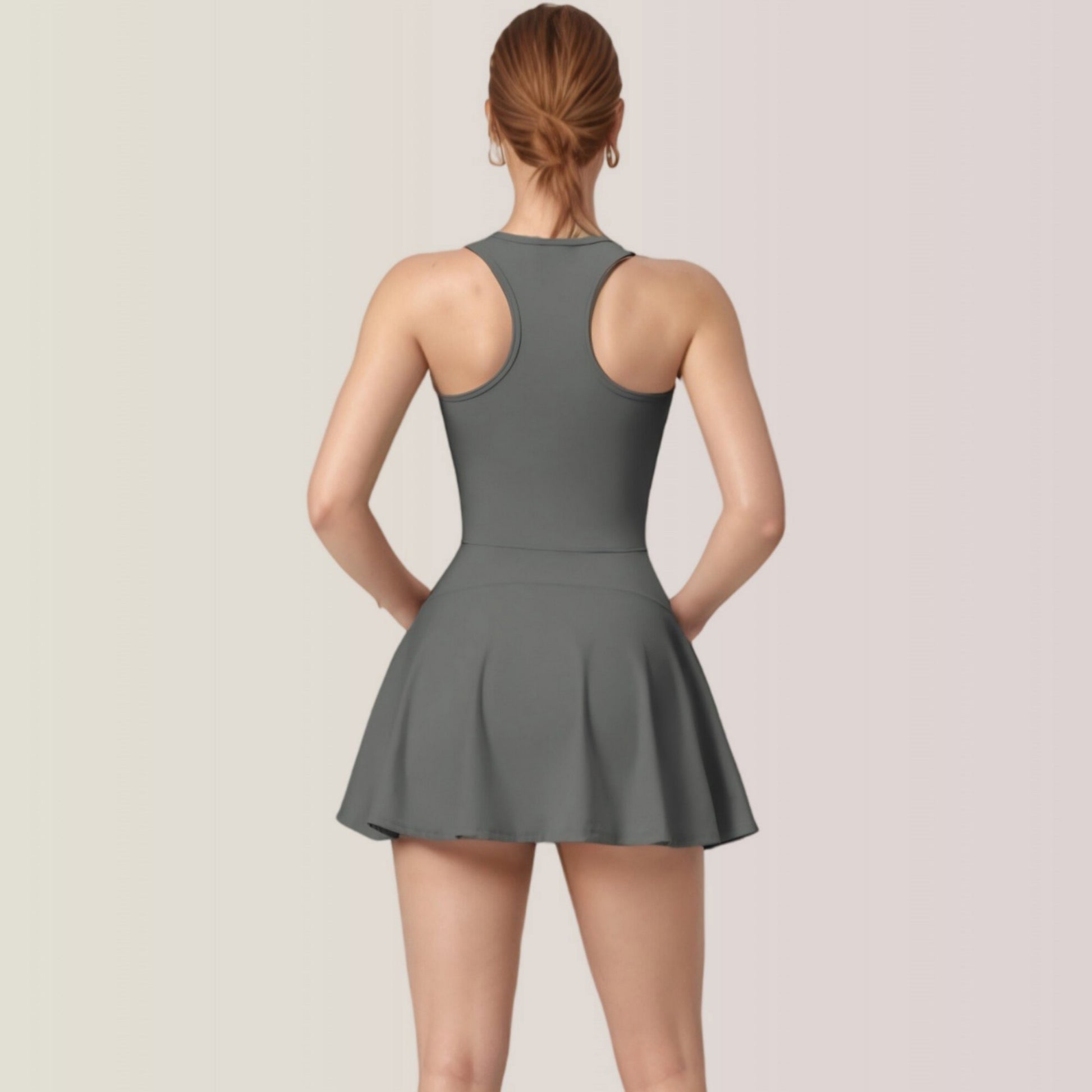 Activewear Romper with Skirt Overlay and Built-In Shorts Design