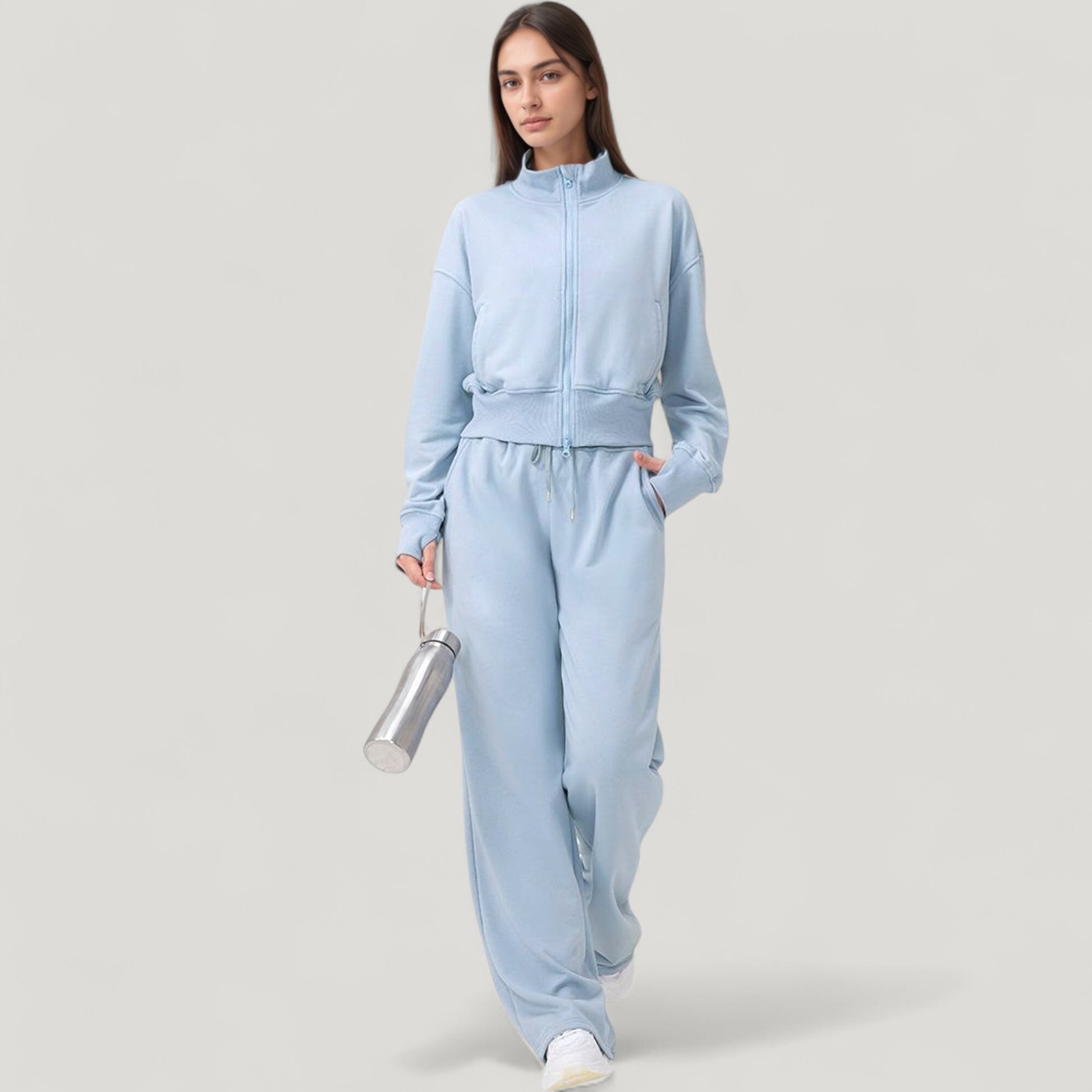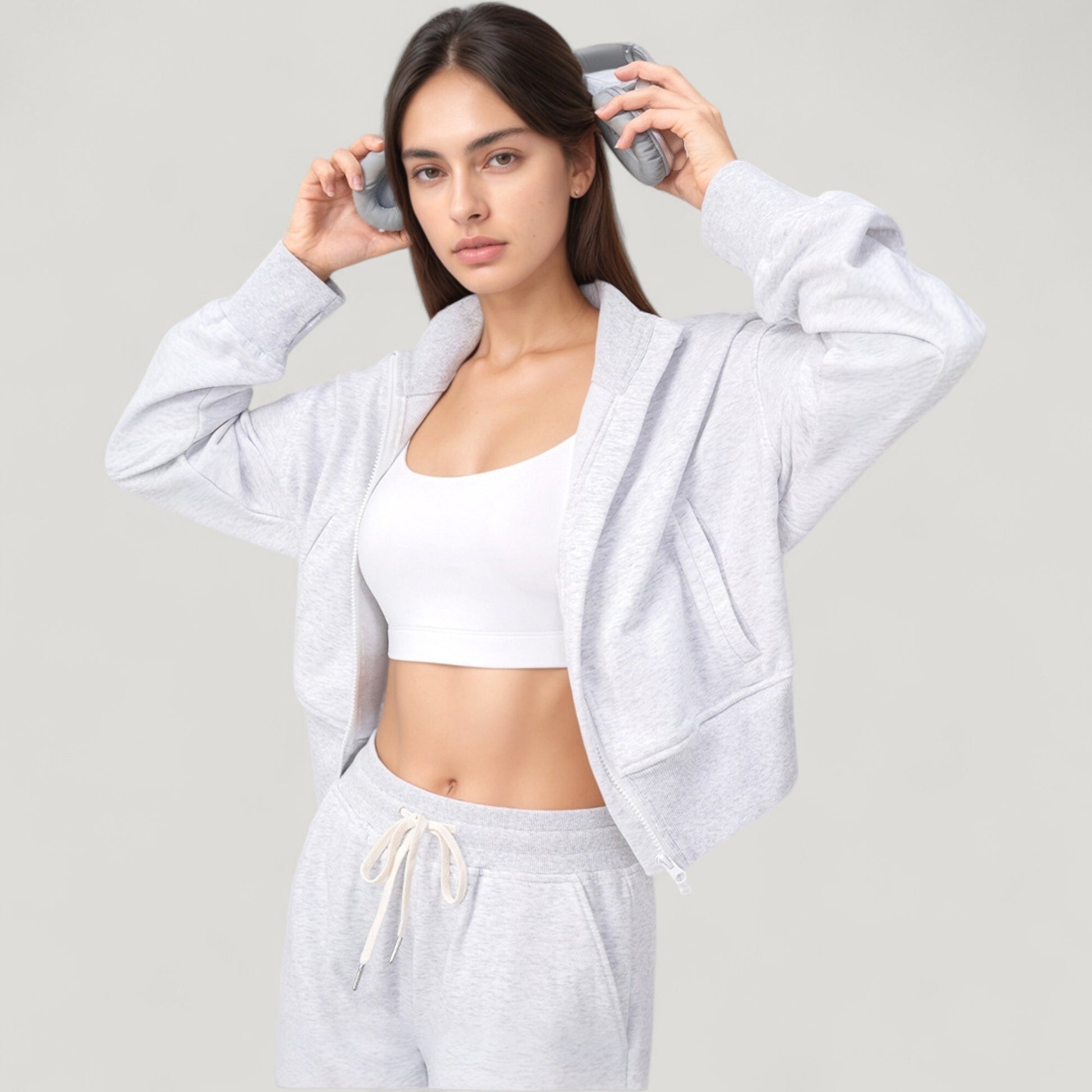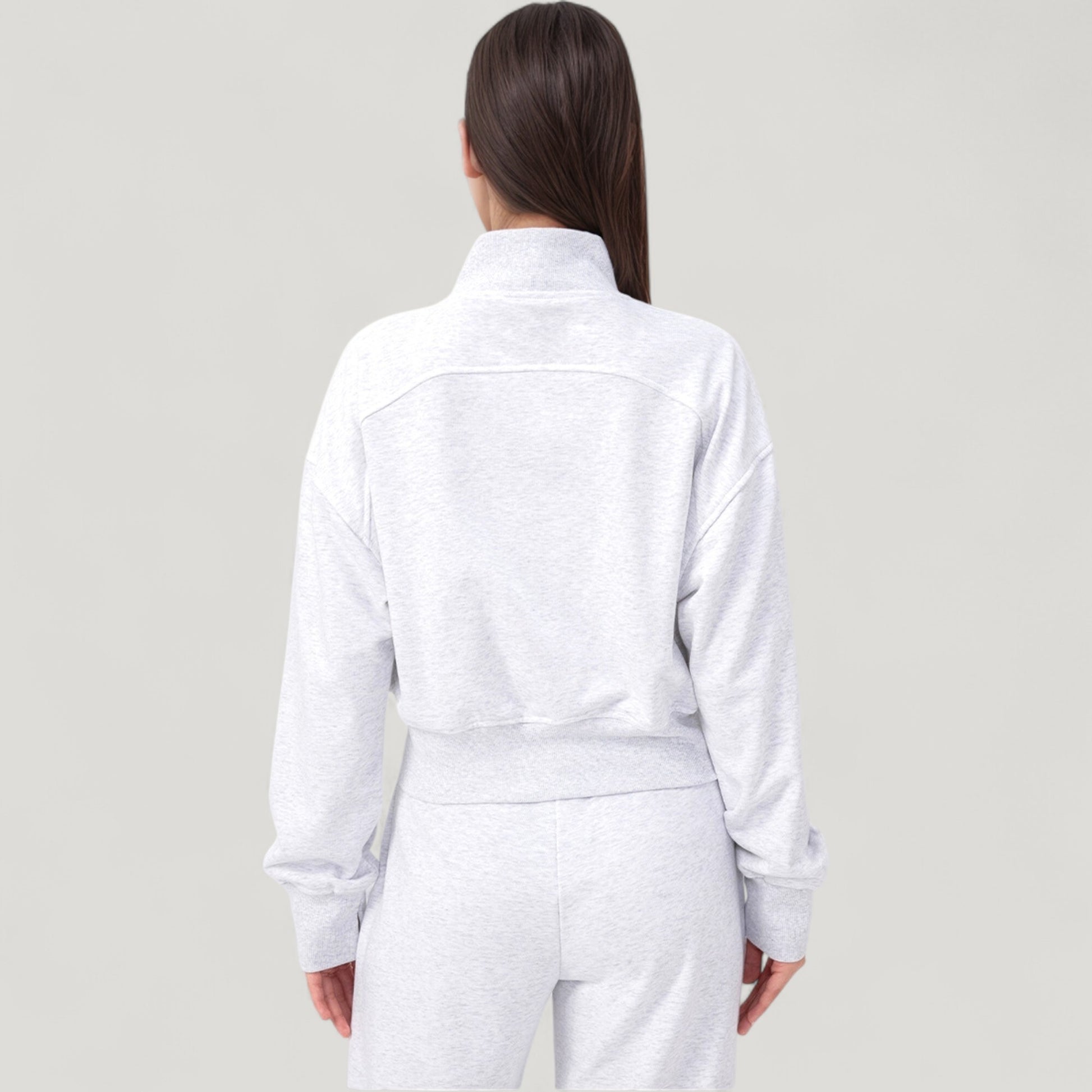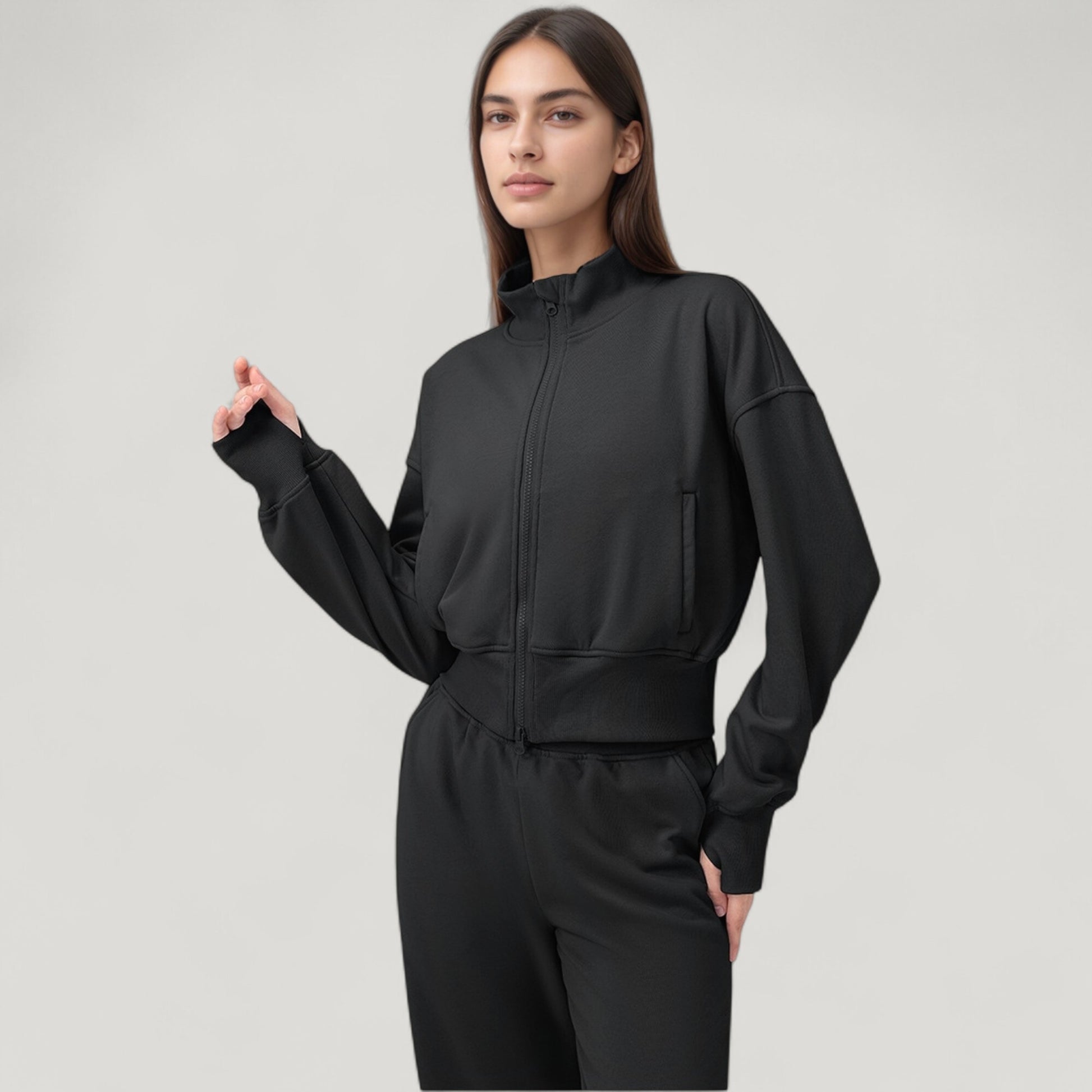 Cropped Zip-Up Jacket with High Collar and Long Sleeves