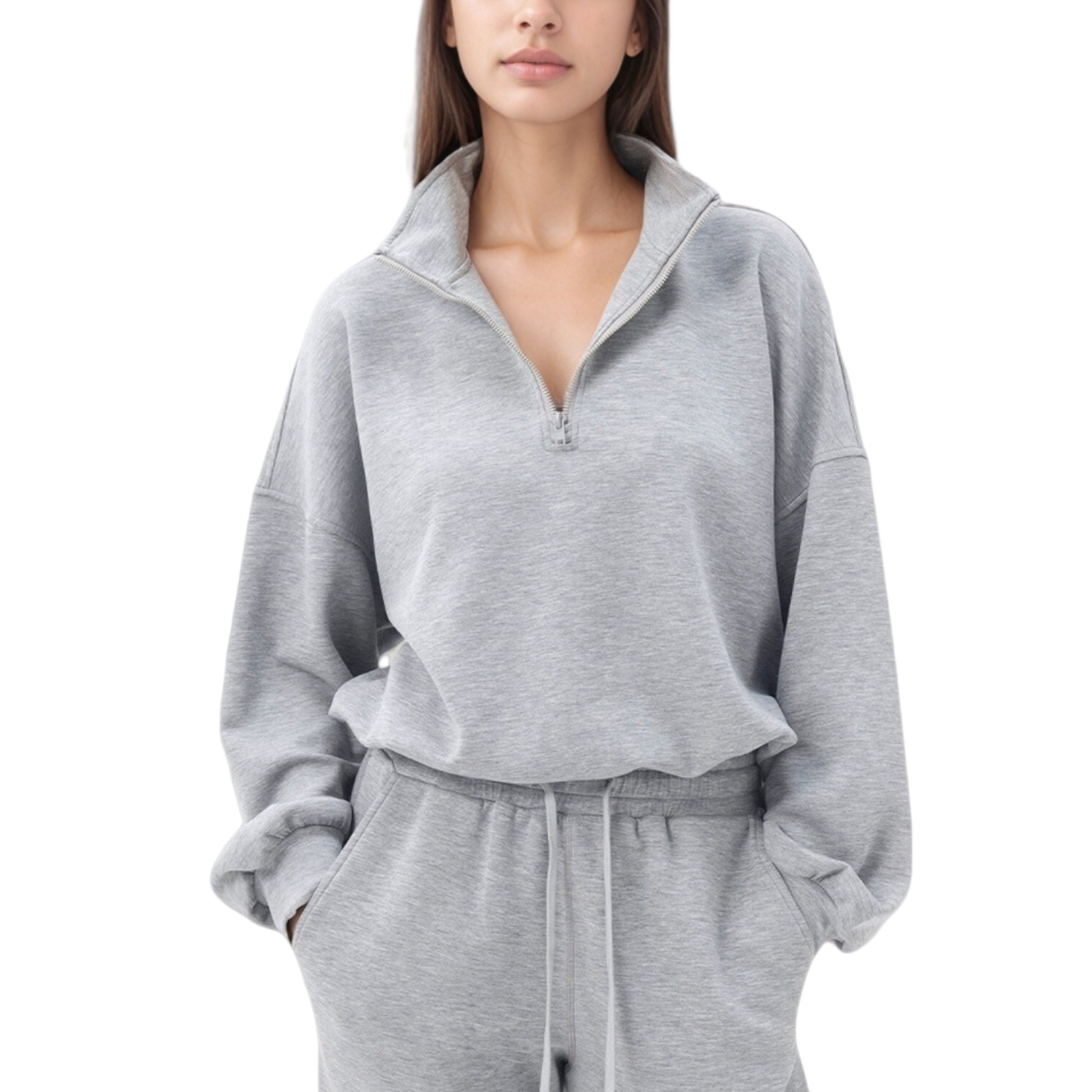 Long Sleeve Half Zip Pullover Top with High Collar and Relaxed Fit