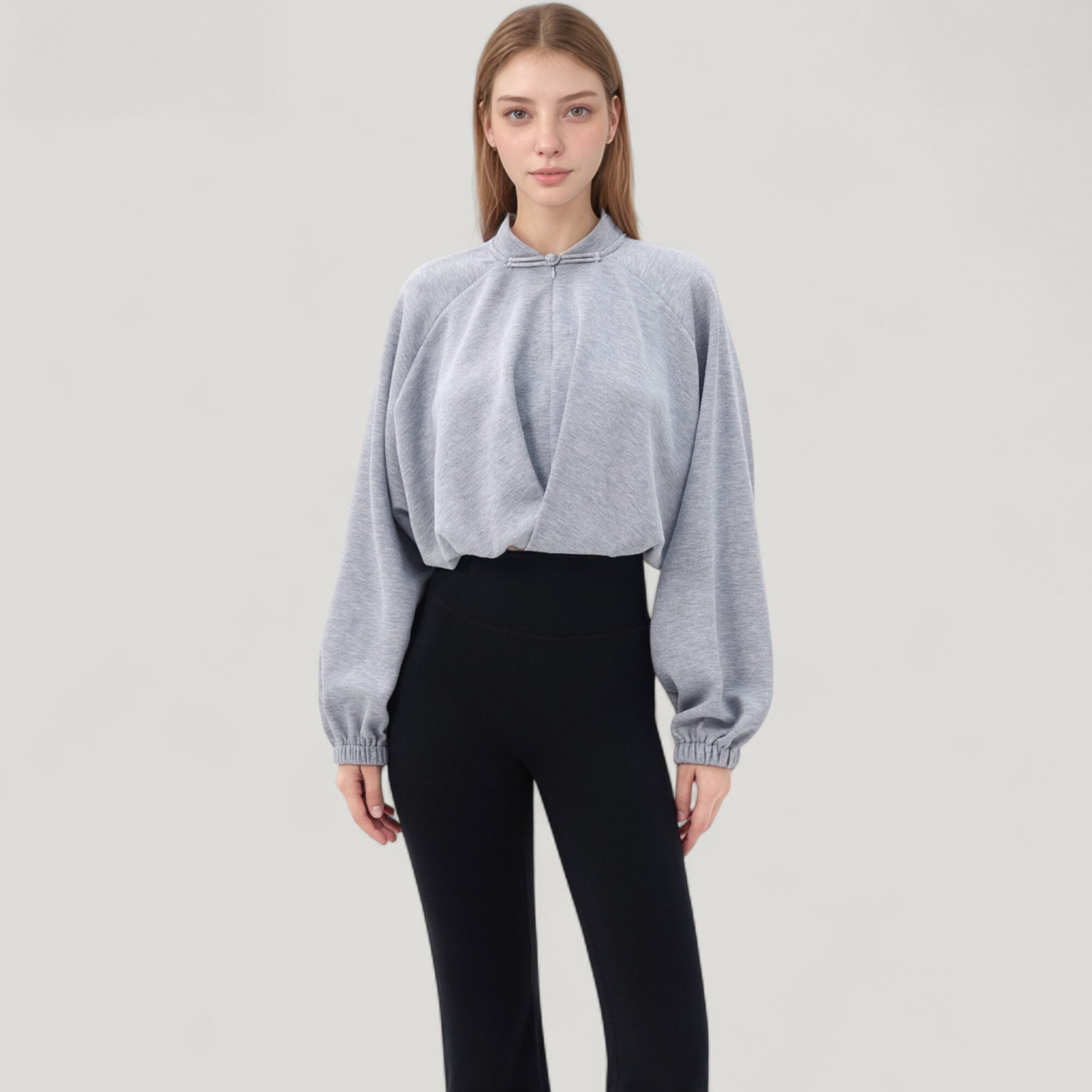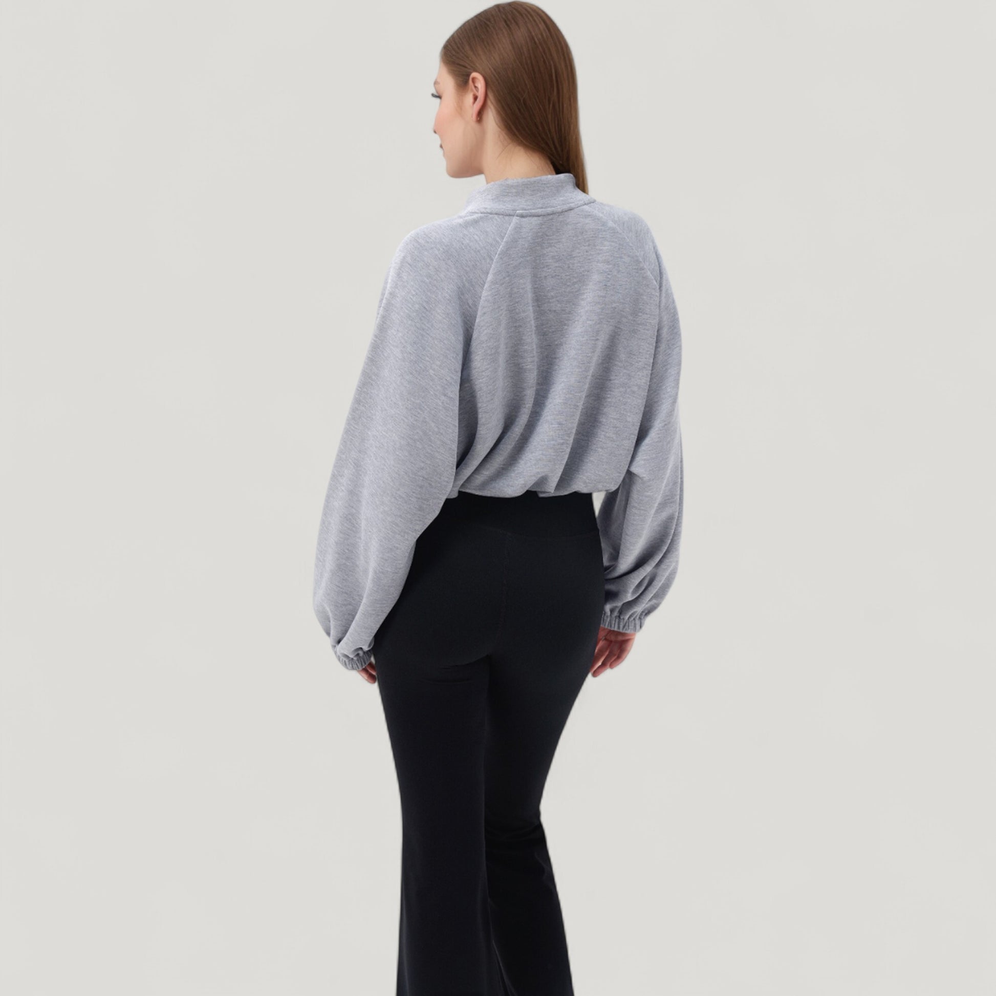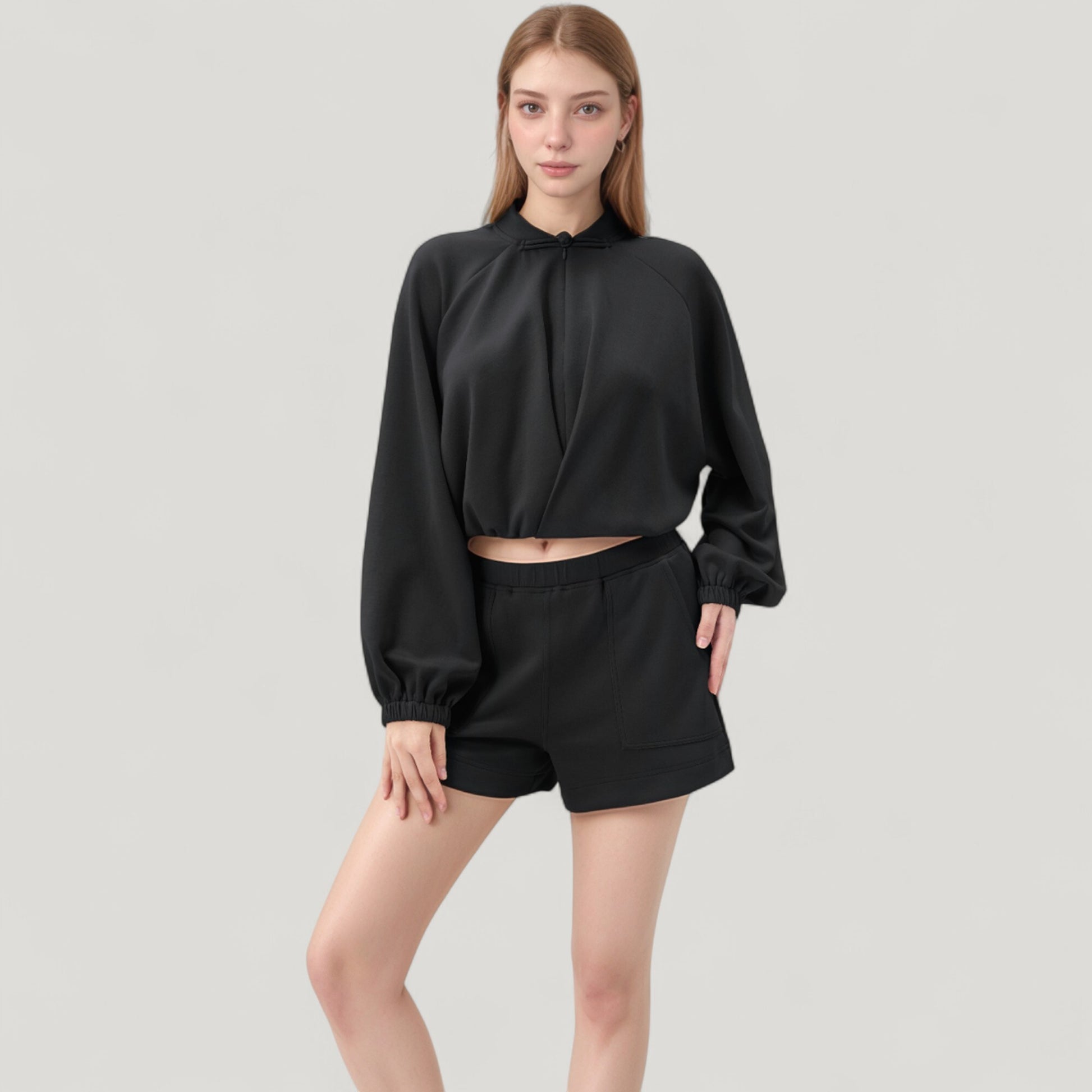 Long Sleeve Woven Lounge Top with Half Zip Front, Elastic Hem, and Relaxed Draped Fit