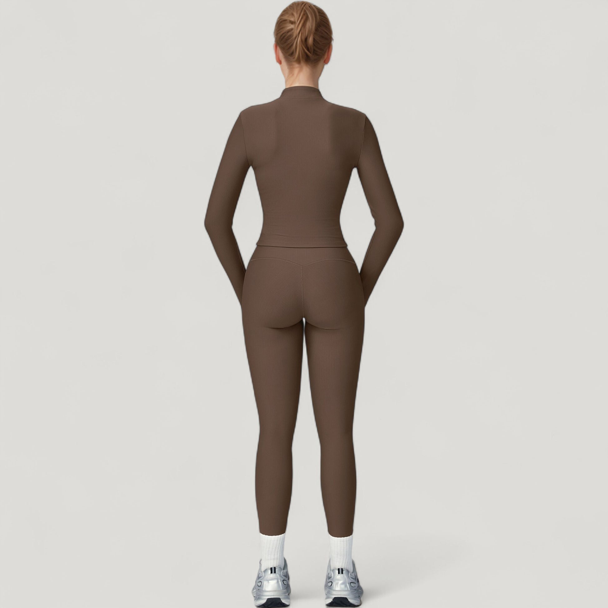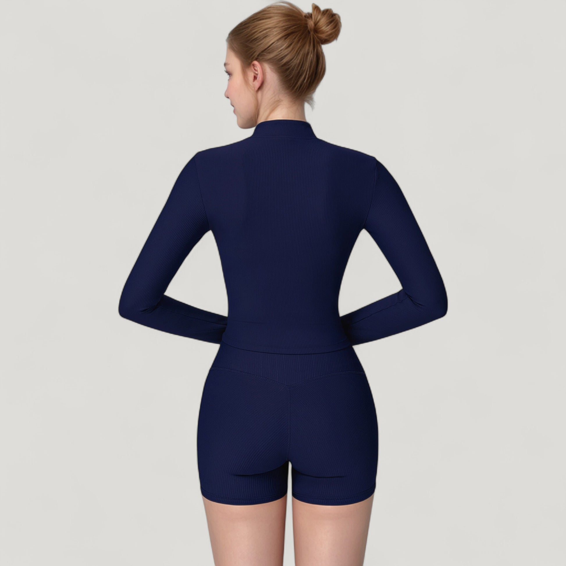 Long Sleeve Ribbed Zip-Up Athletic Jacket with High Neckline