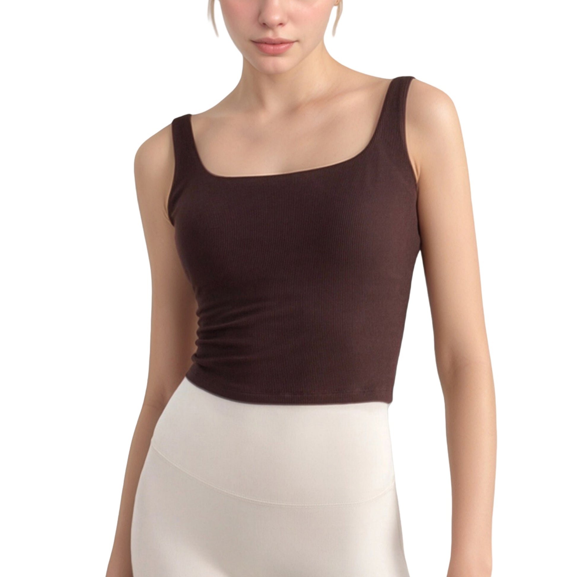 Ribbed Knit Square Neck Tank Top with Wide Straps