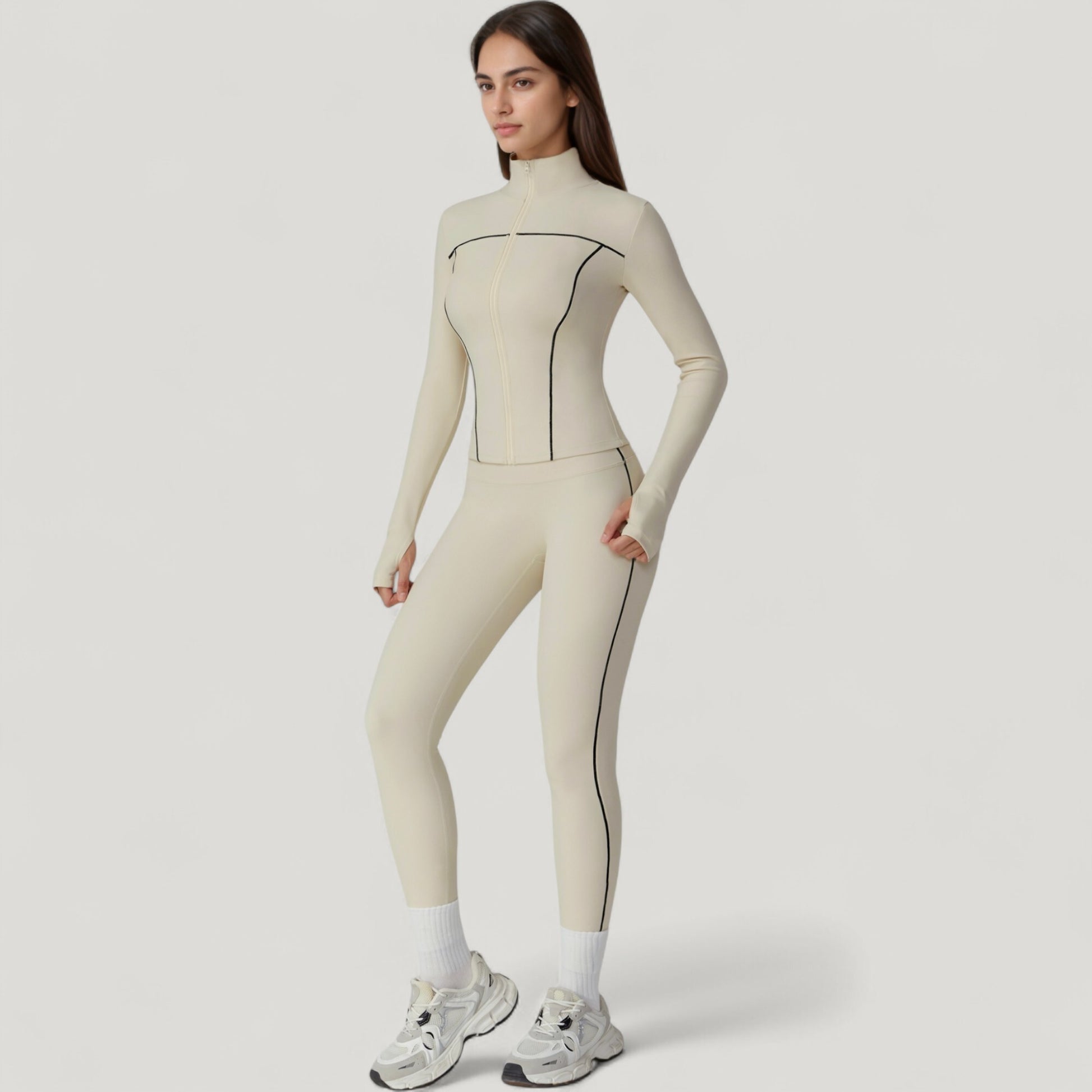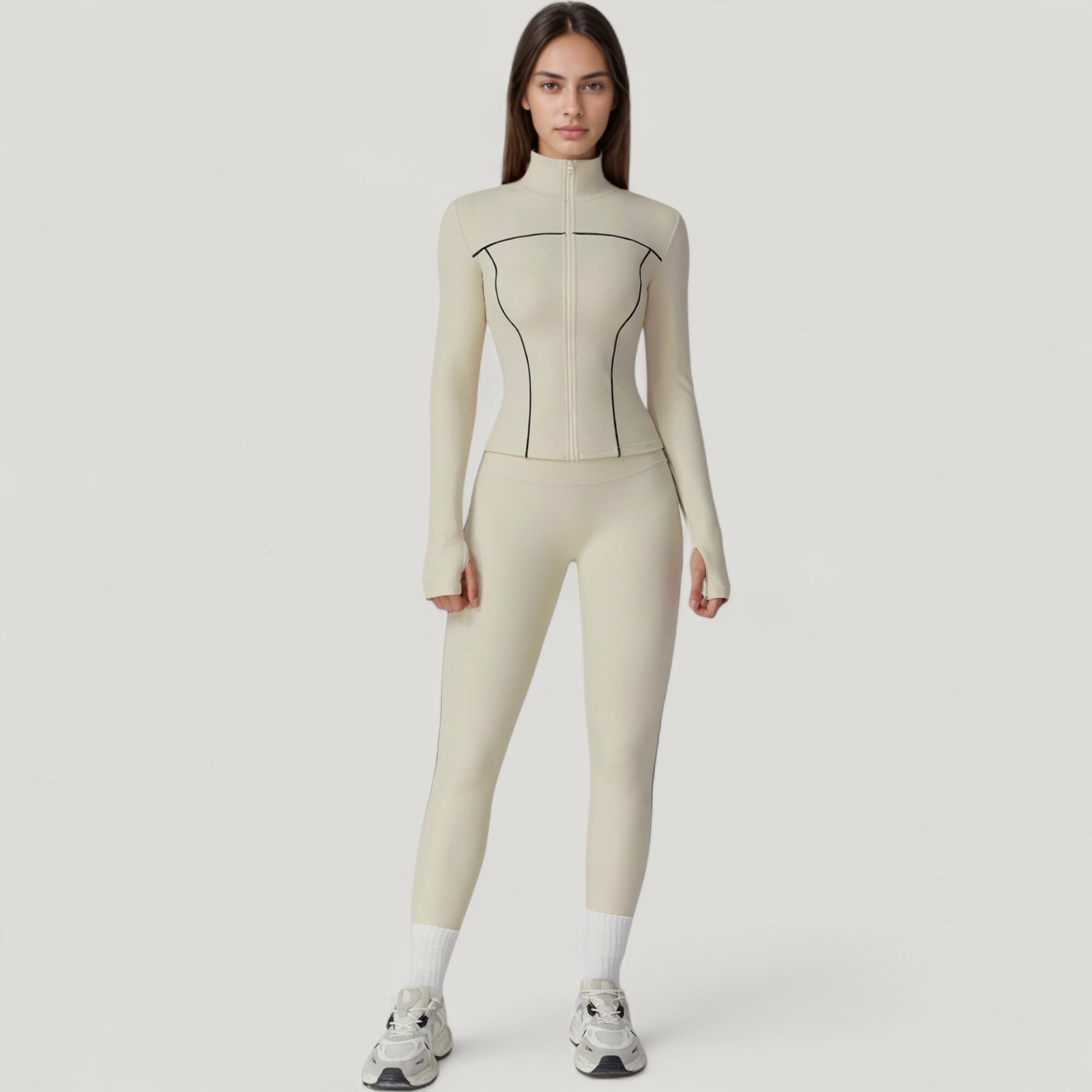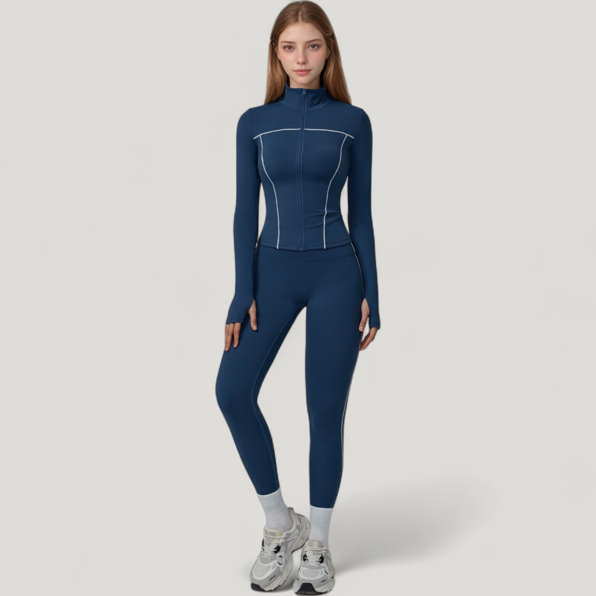 Fitted Zip-Up Activewear Jacket with High Collar Long Sleeves and Contour Seaming