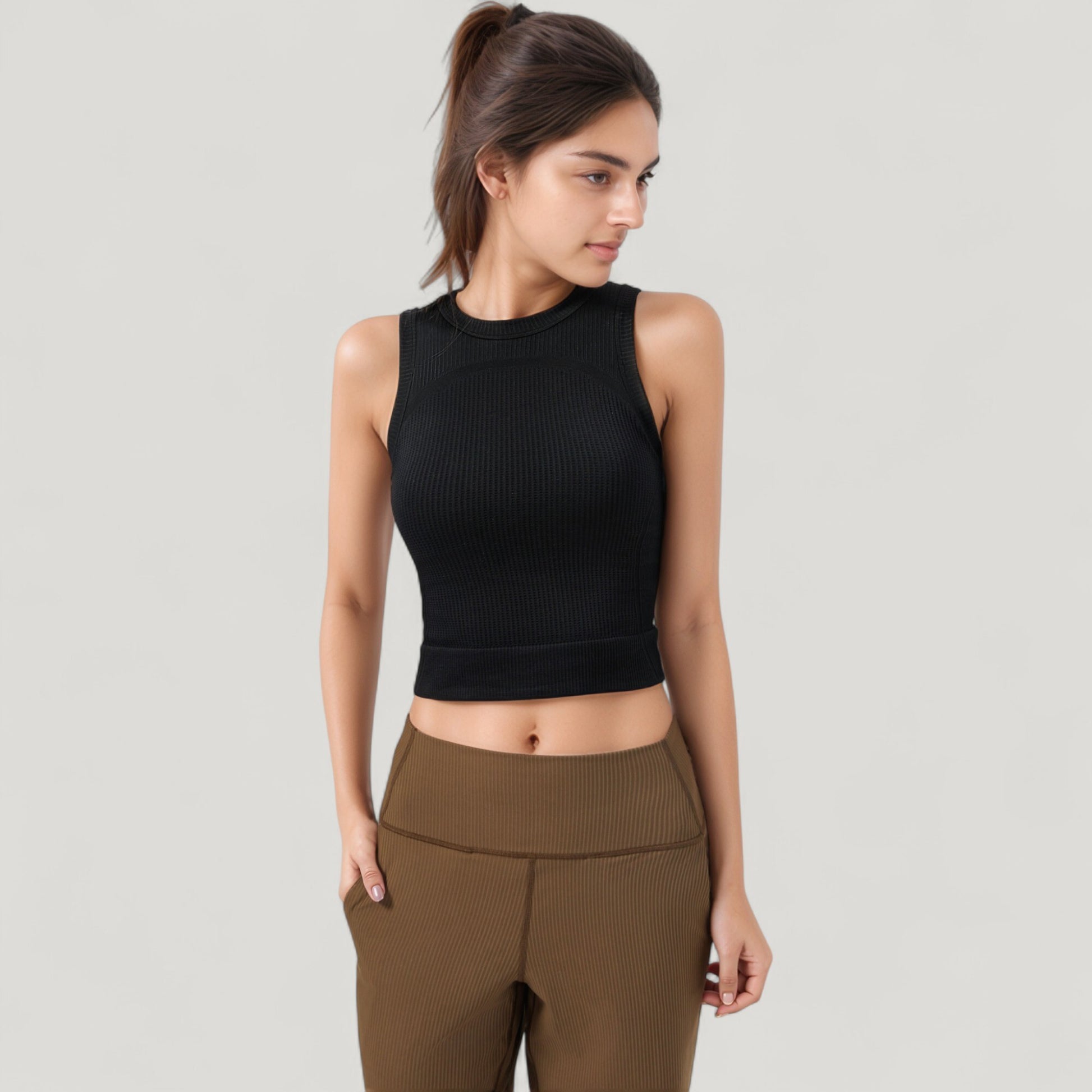 Ribbed High Neck Sleeveless Crop Top with Seam Detail
