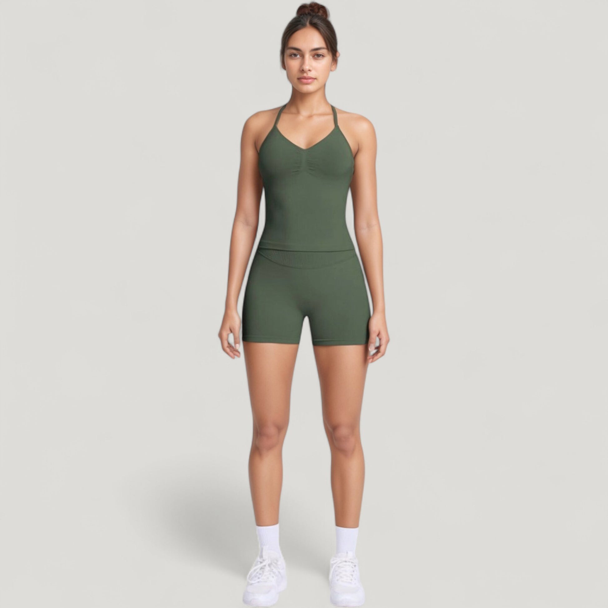 Seamless Active Set with Halter Neck Top and Fitted Shorts