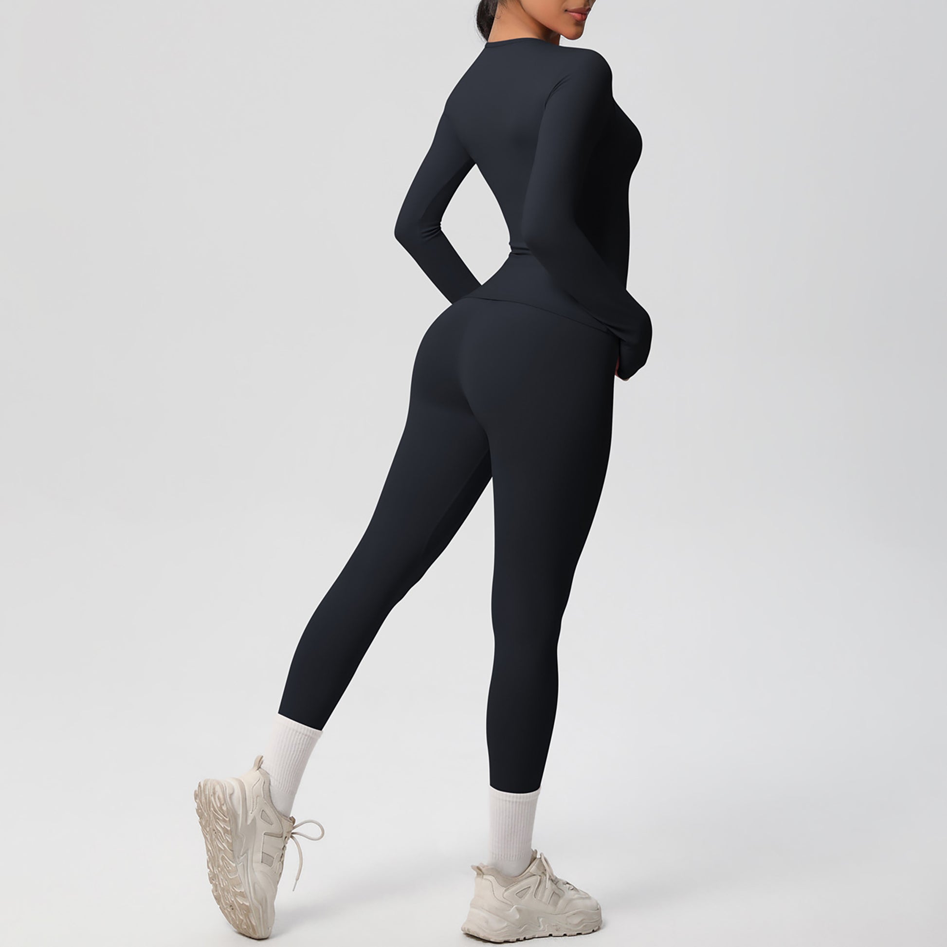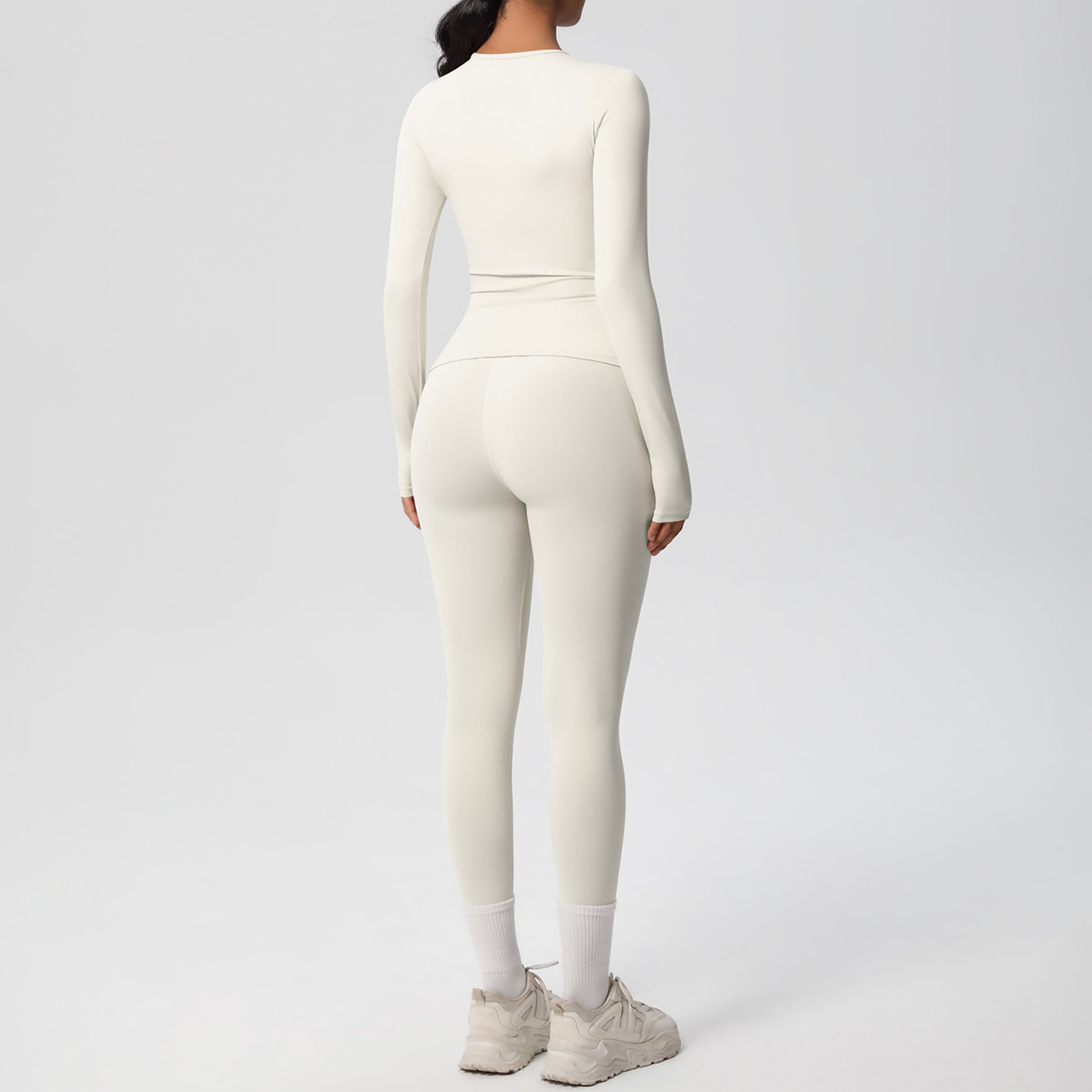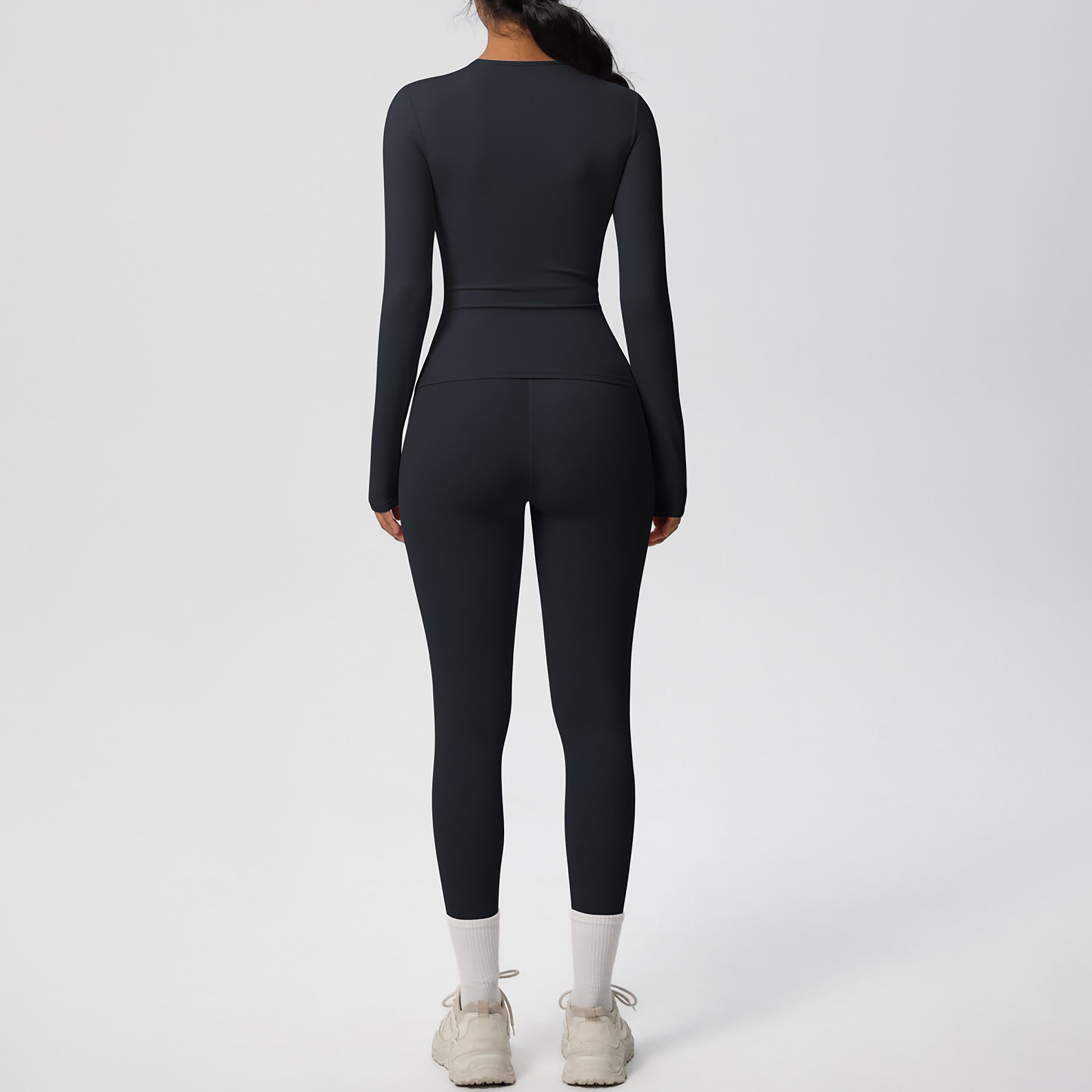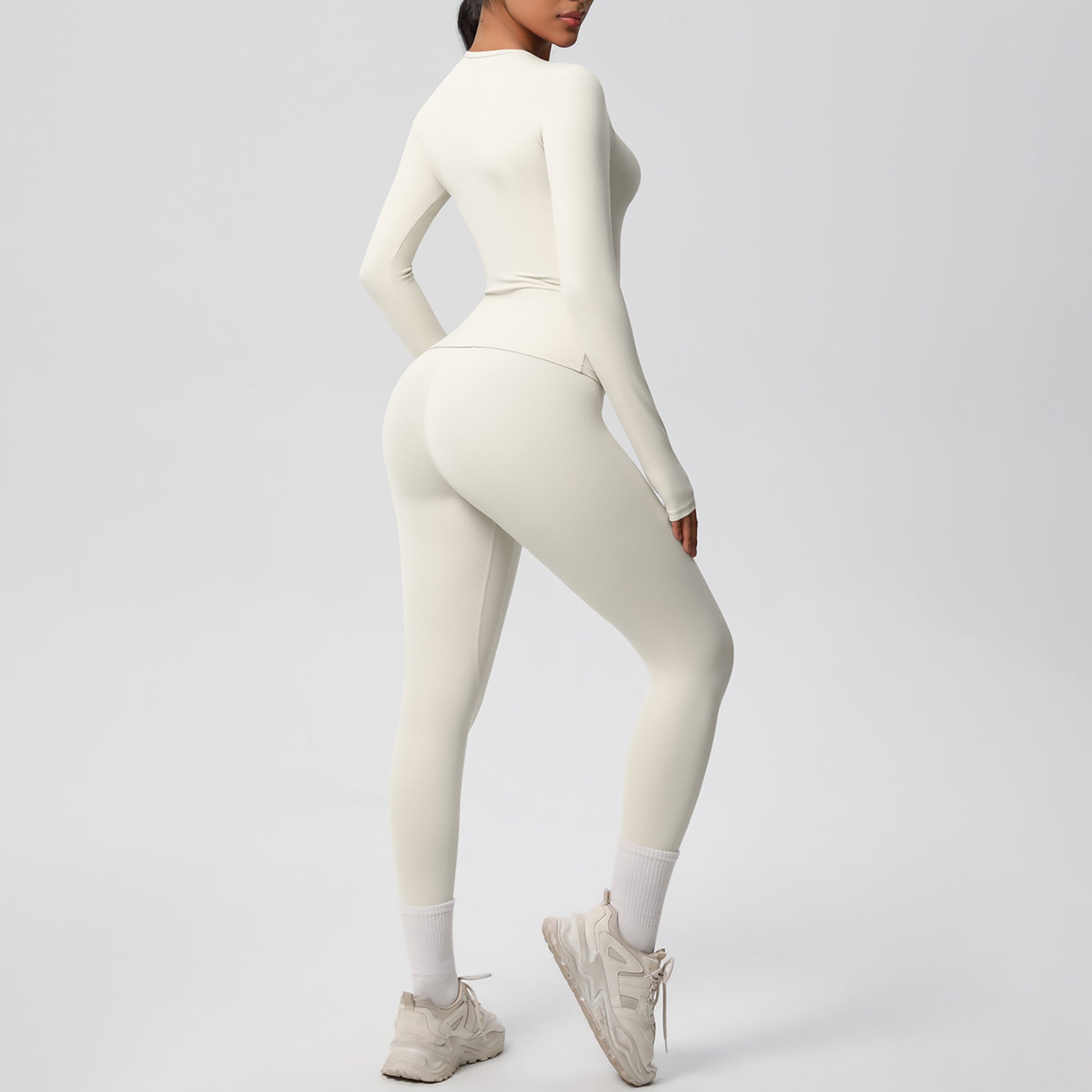 Long Sleeve Crew Neck Top and High Waist Leggings Set with Slim Fit Design