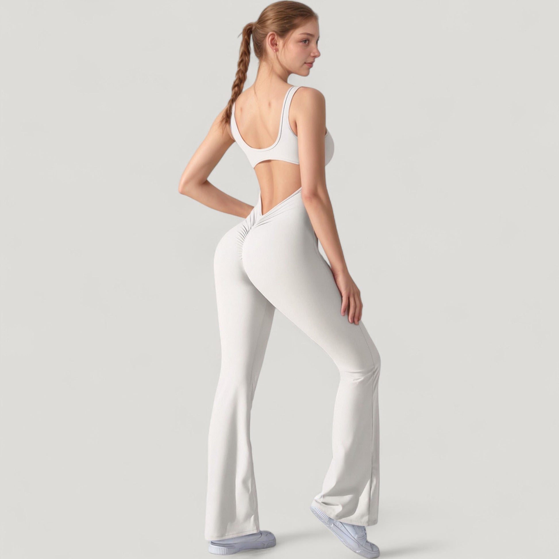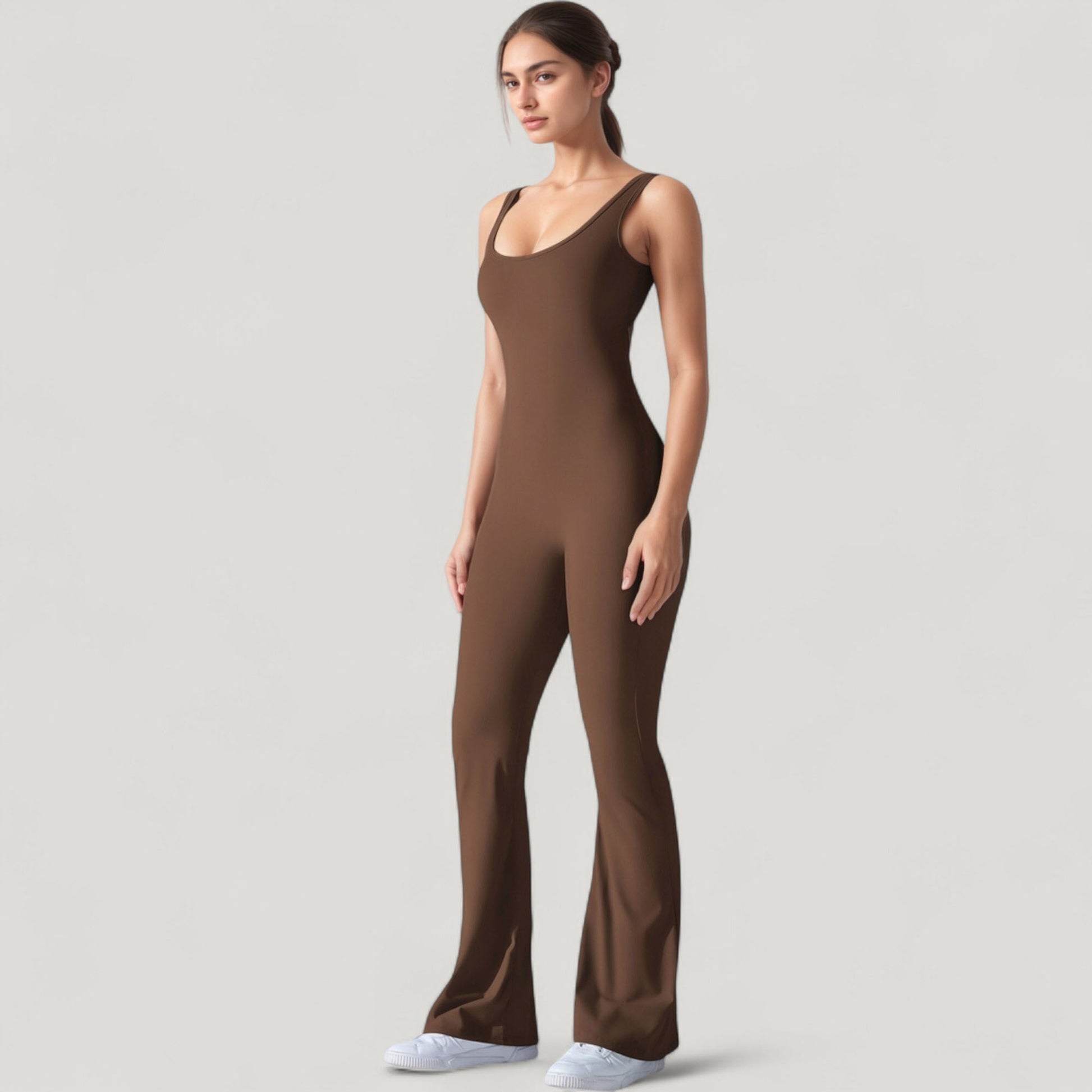 Sleeveless Open Back Fitted Jumpsuit with Flare Leg Design