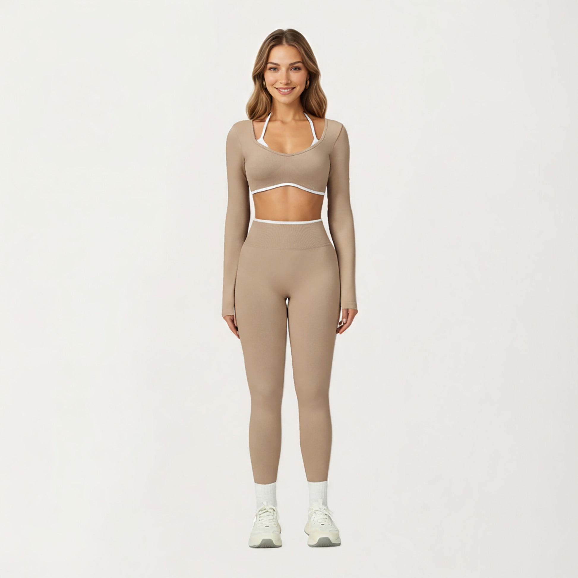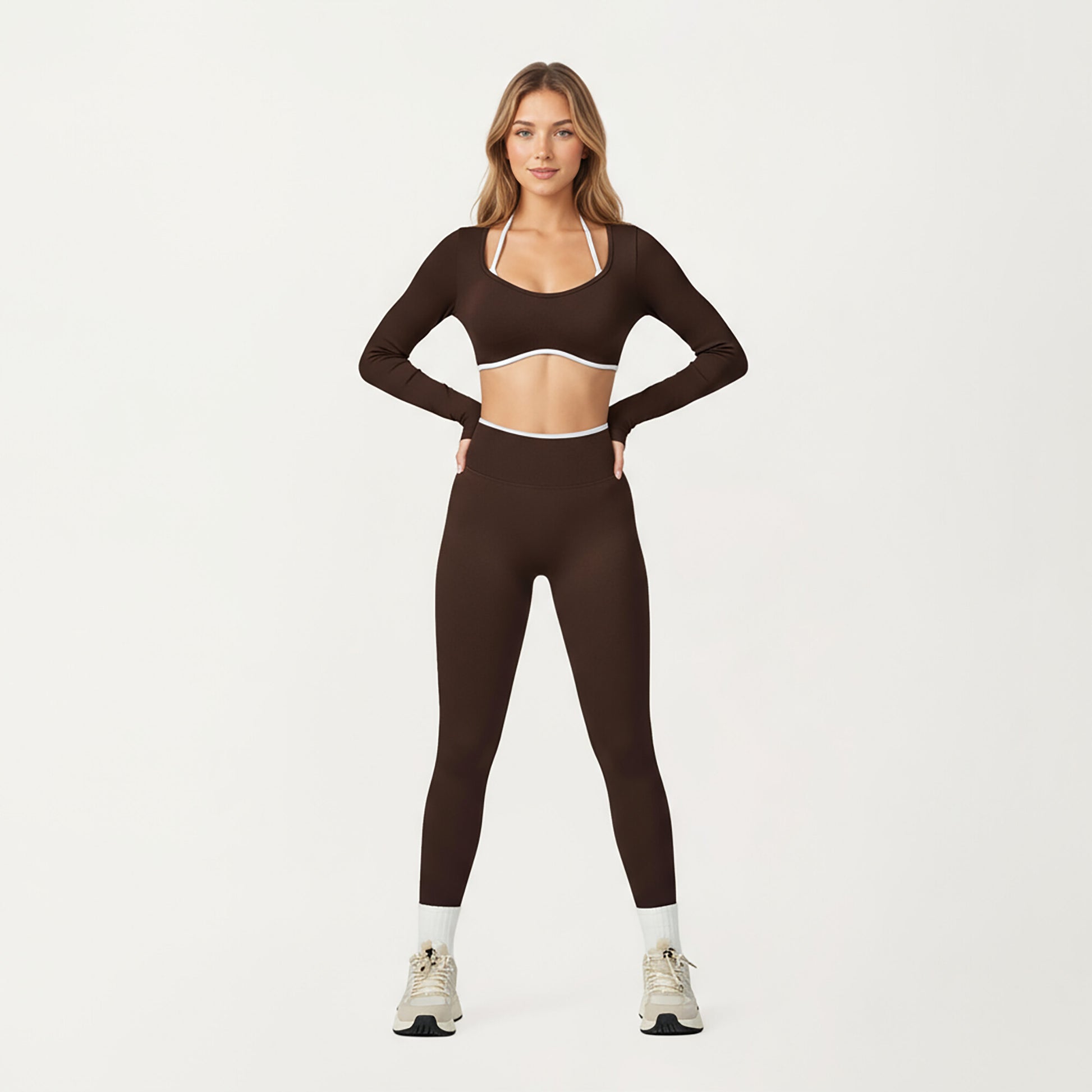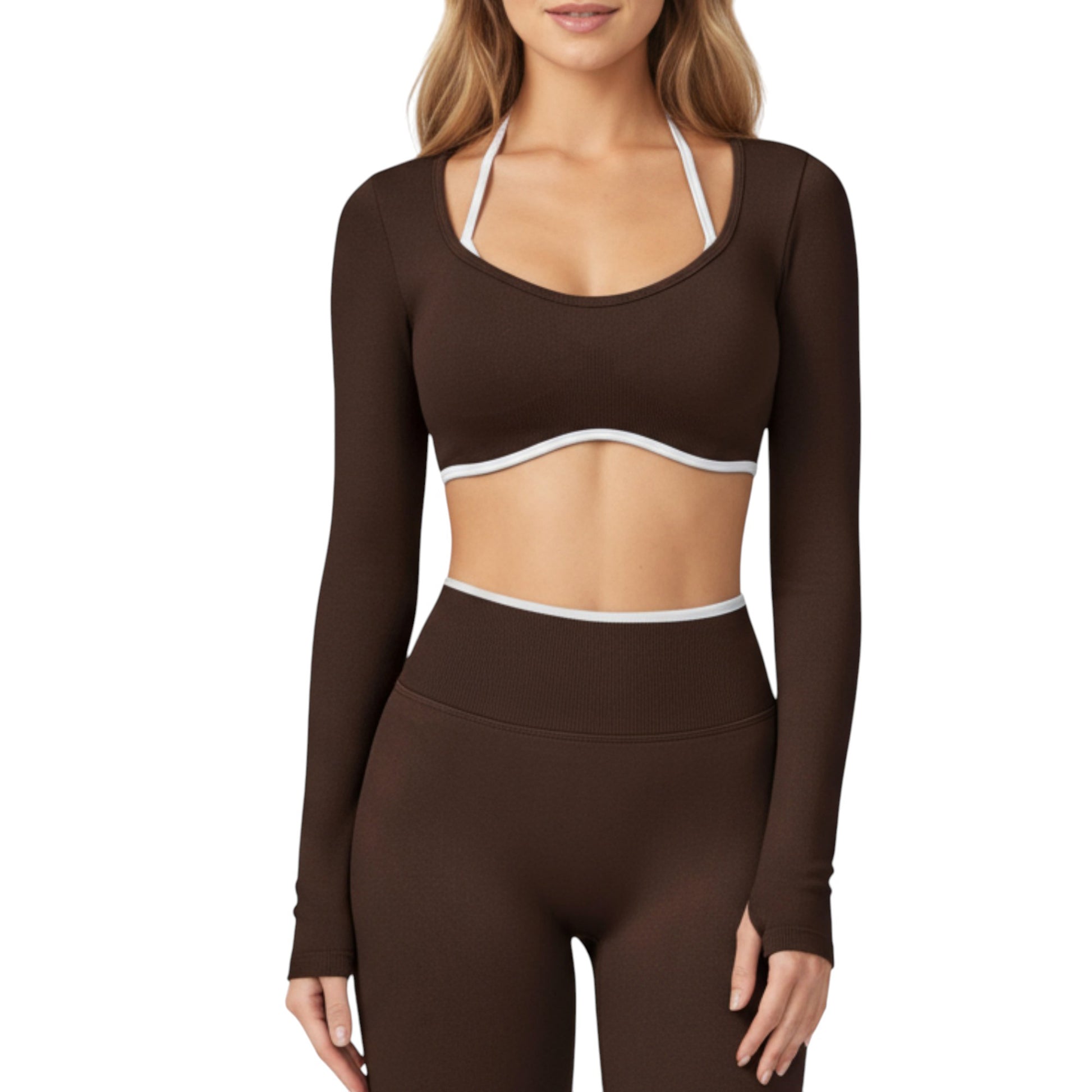 The Anna-Kaci Women's Long Sleeve Crop Top features a sleek scoop neckline and a flattering cropped fit for a modern, sporty look. Designed with subtle contrast trim along the edges, this top blends minimalistic style with comfort. Made from soft, stretchy fabric, it offers a flexible fit that moves with you while maintaining a chic, streamlined silhouette.