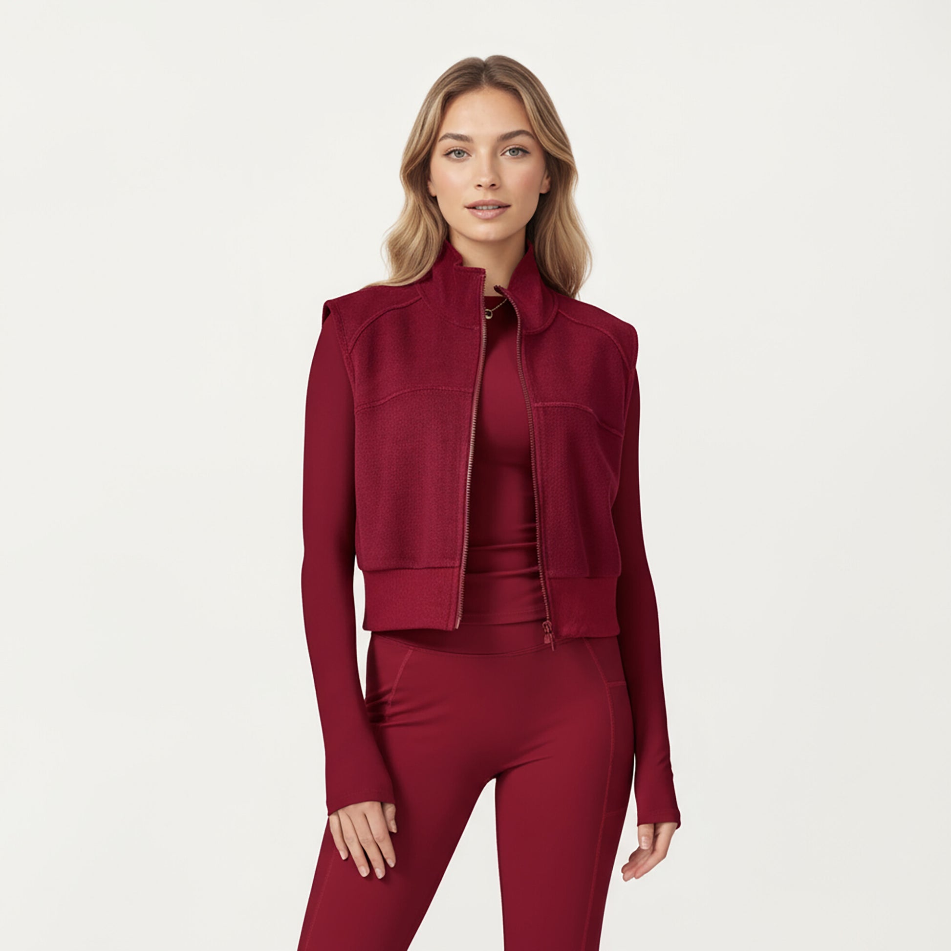 Cropped Zip Closure Vest with Stand Collar and Fitted Hem