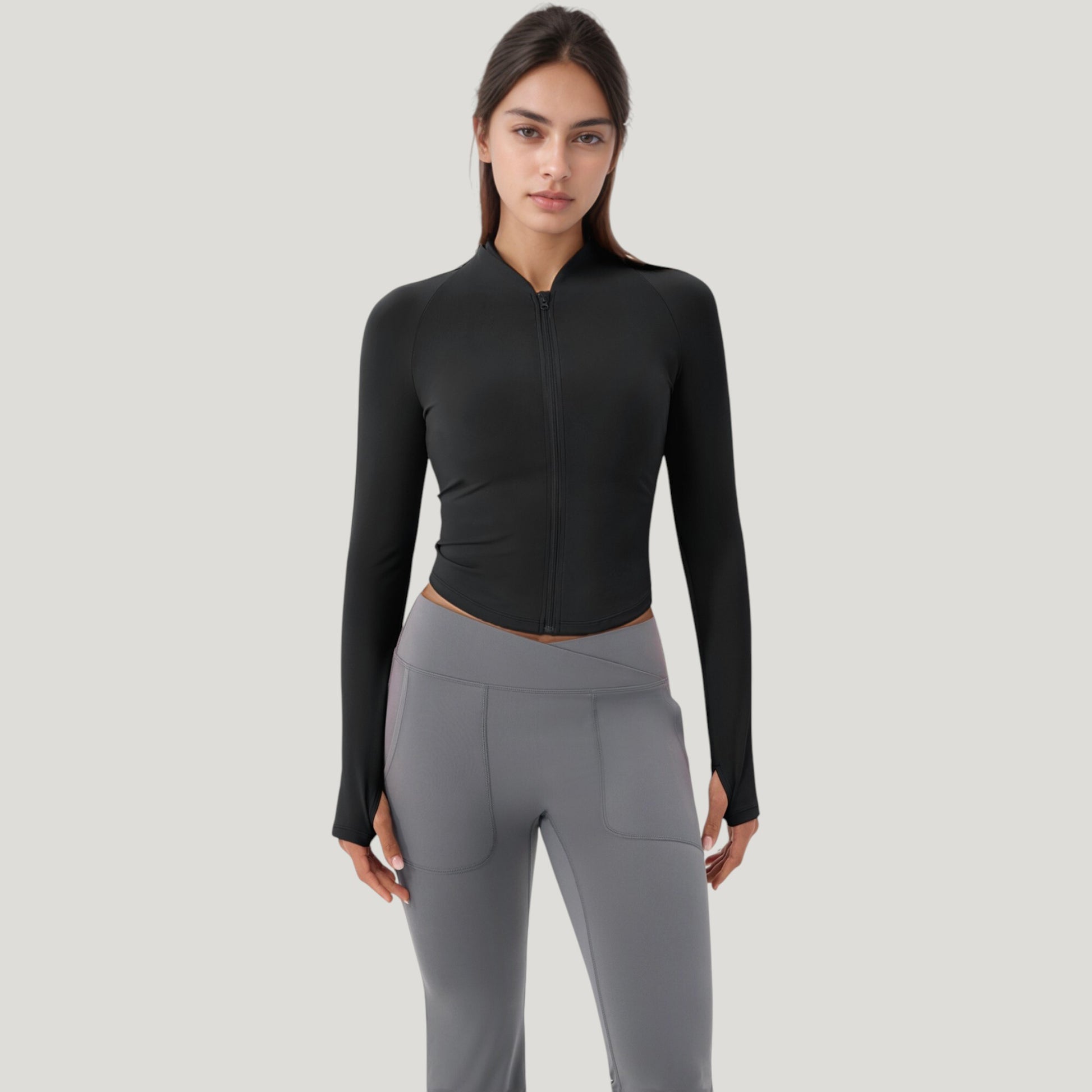 Long Sleeve Zip Front Activewear Jacket with Streamlined Fit and Lightweight Performance Fabric
