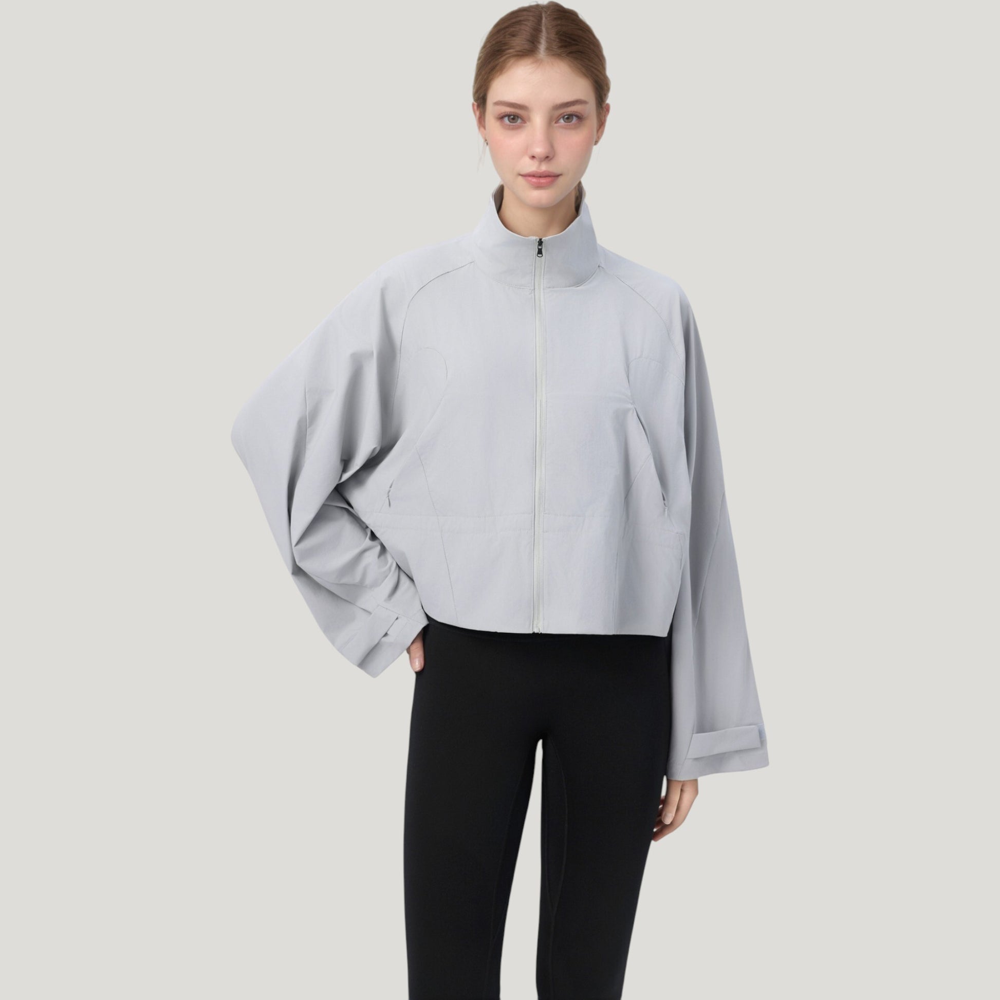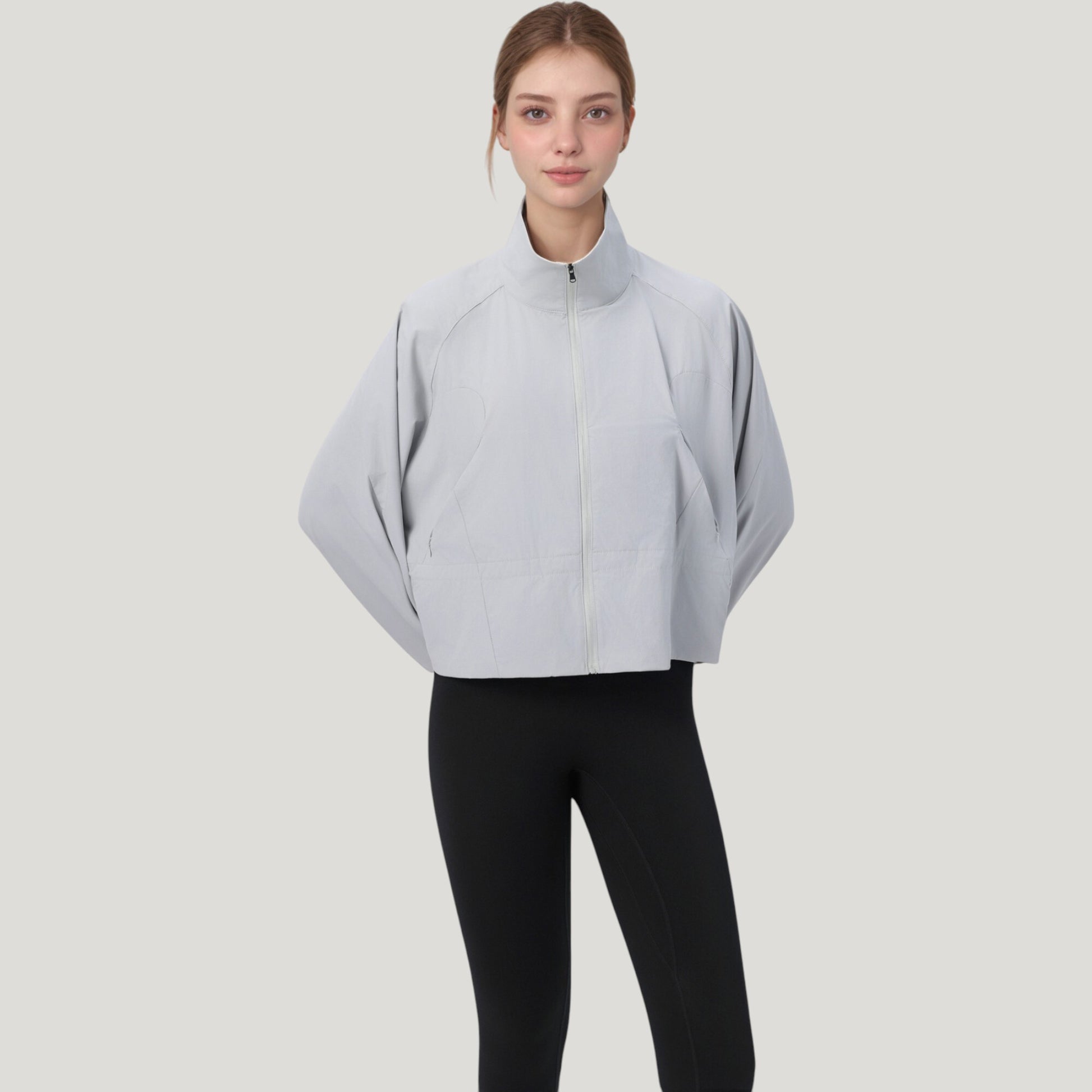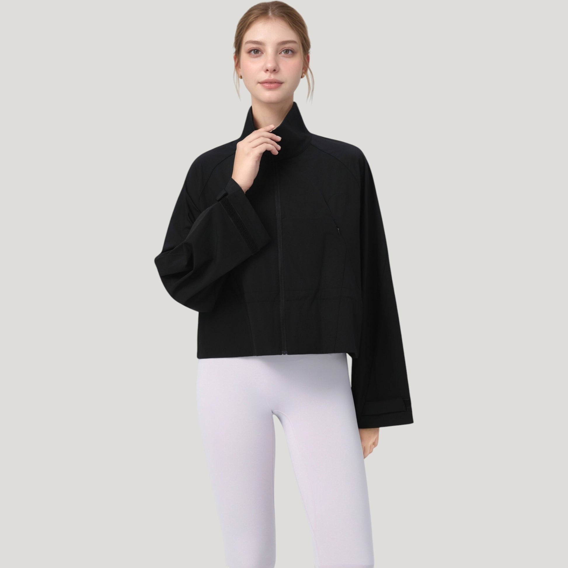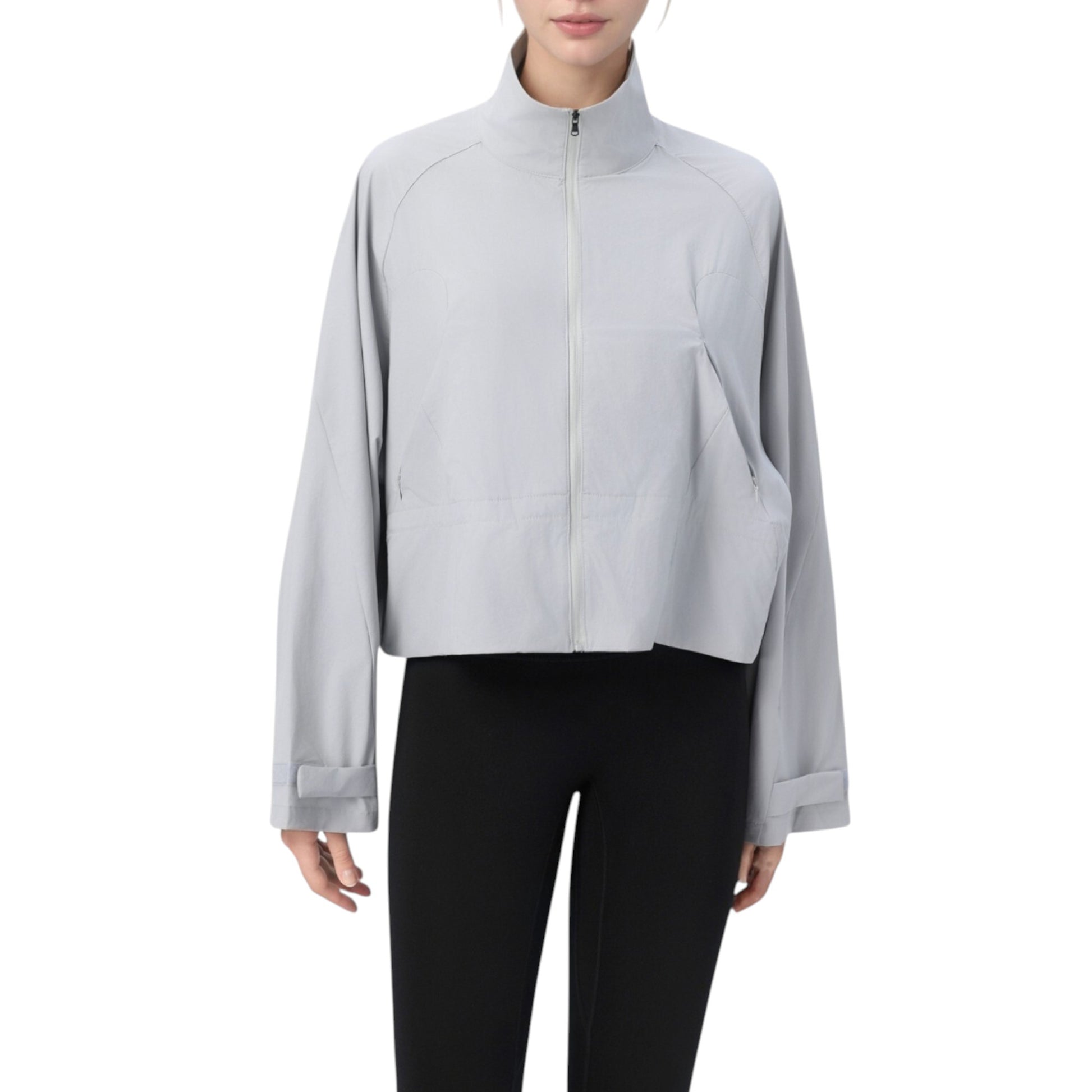 Zip Up Lightweight Active Jacket with Stand Collar and Relaxed Fit