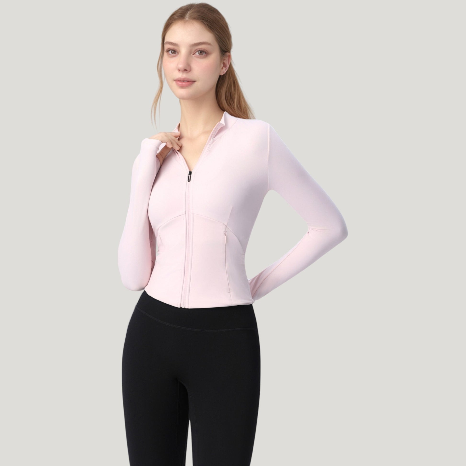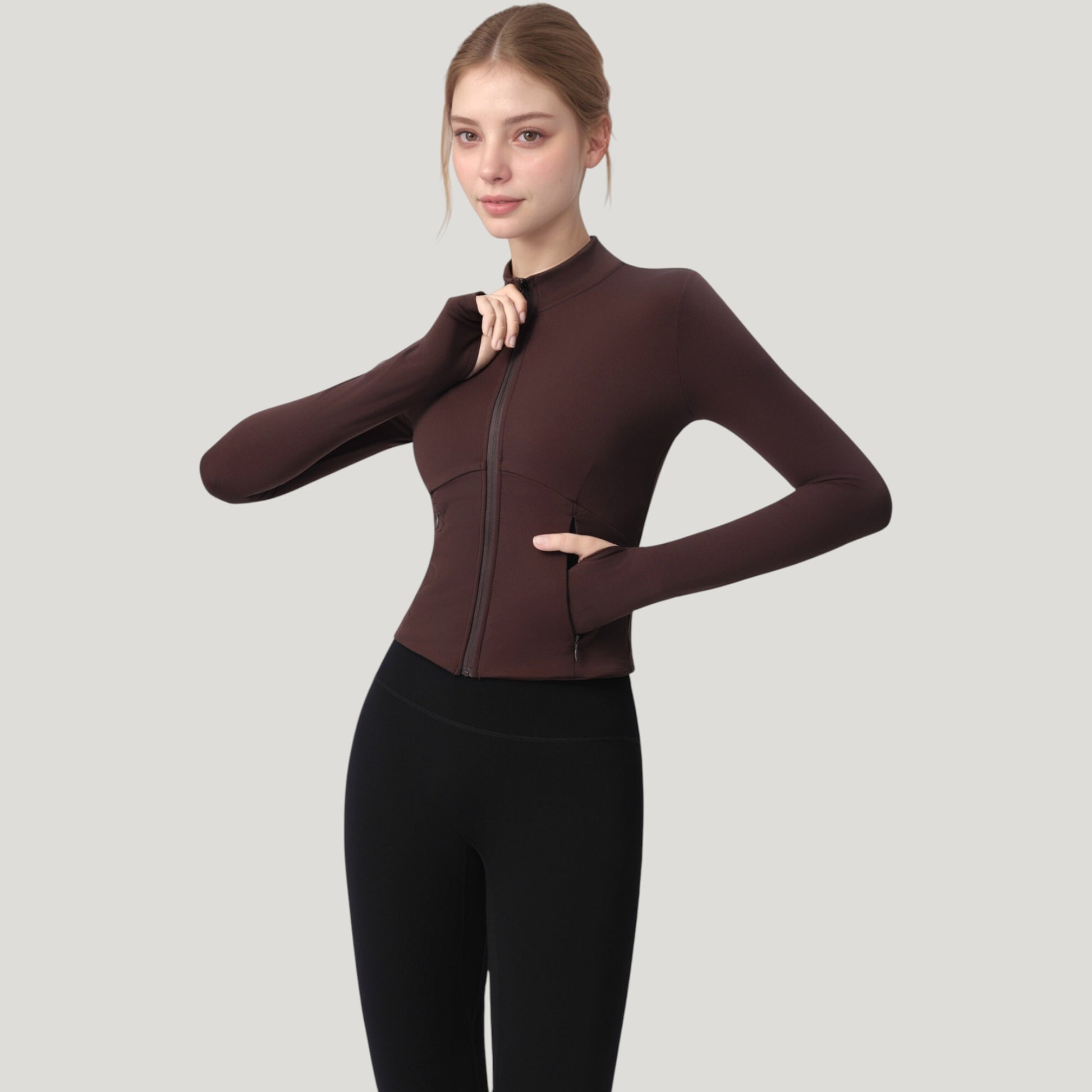 Long Sleeve Full Zip Athletic Jacket with Thumbholes and Fitted Silhouette