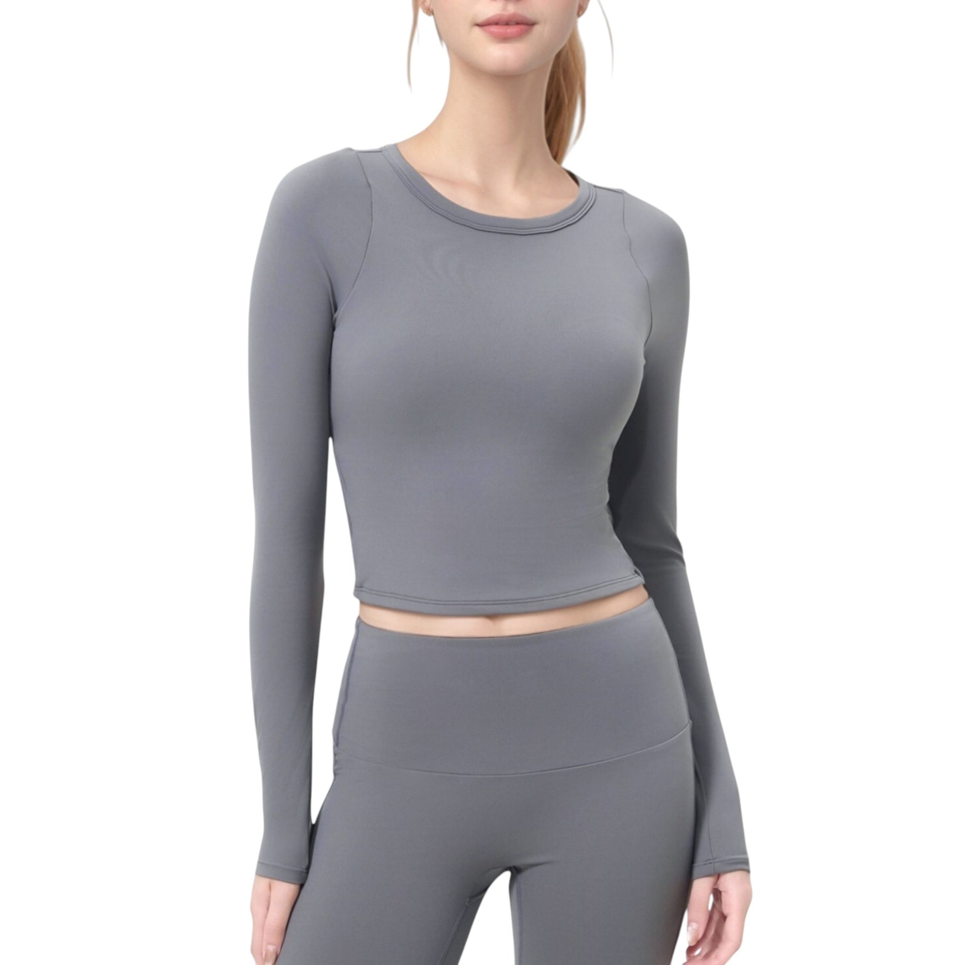 Long Sleeve Cropped Sports Top with Open Back and Crisscross Strap Detail
