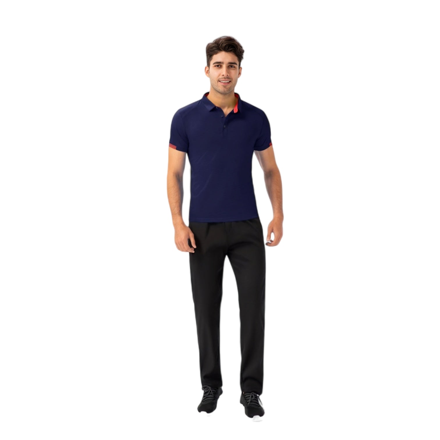 Men's Athletic Fit Polo Shirt with Contrast Collar and Moisture-Wicking Stretch Fabric