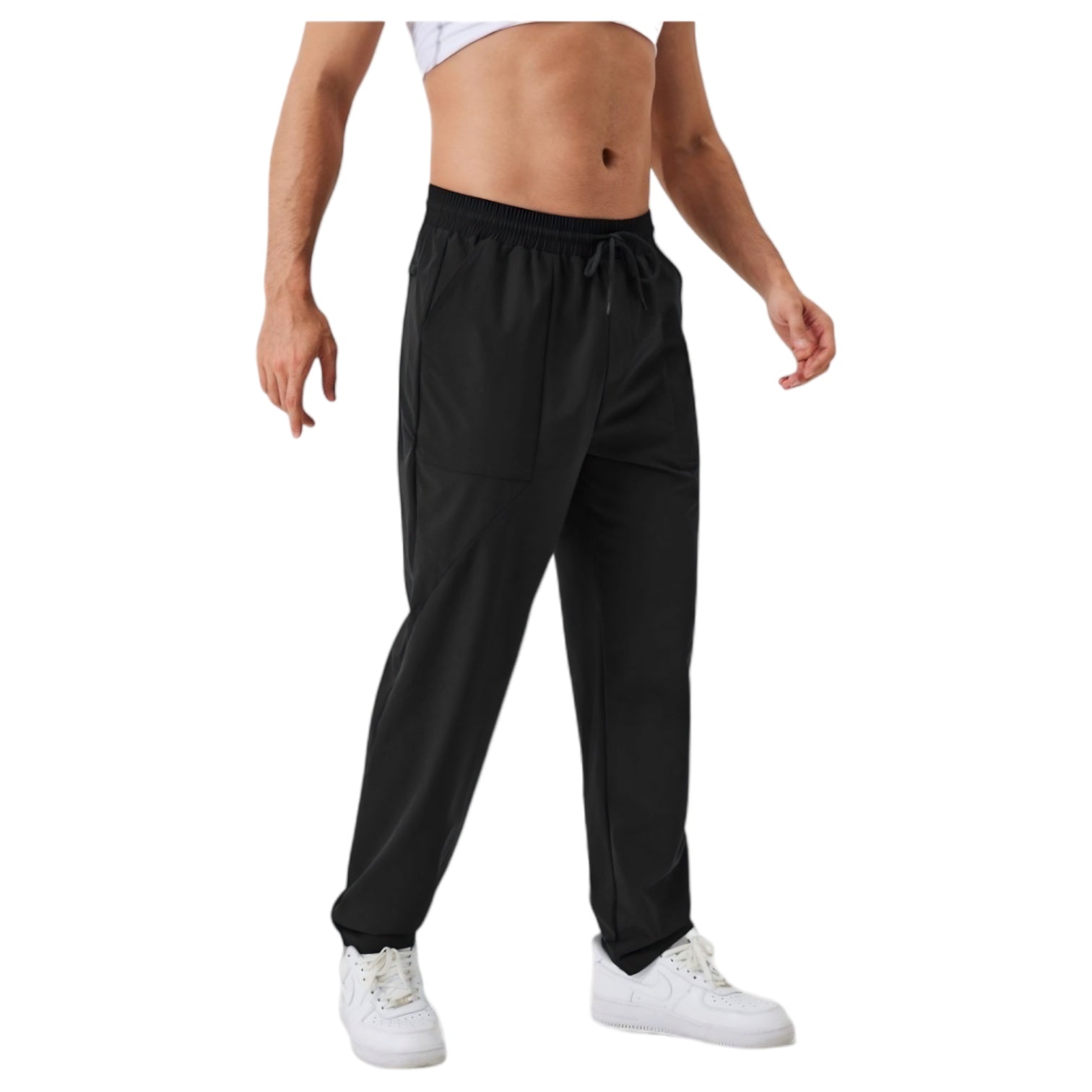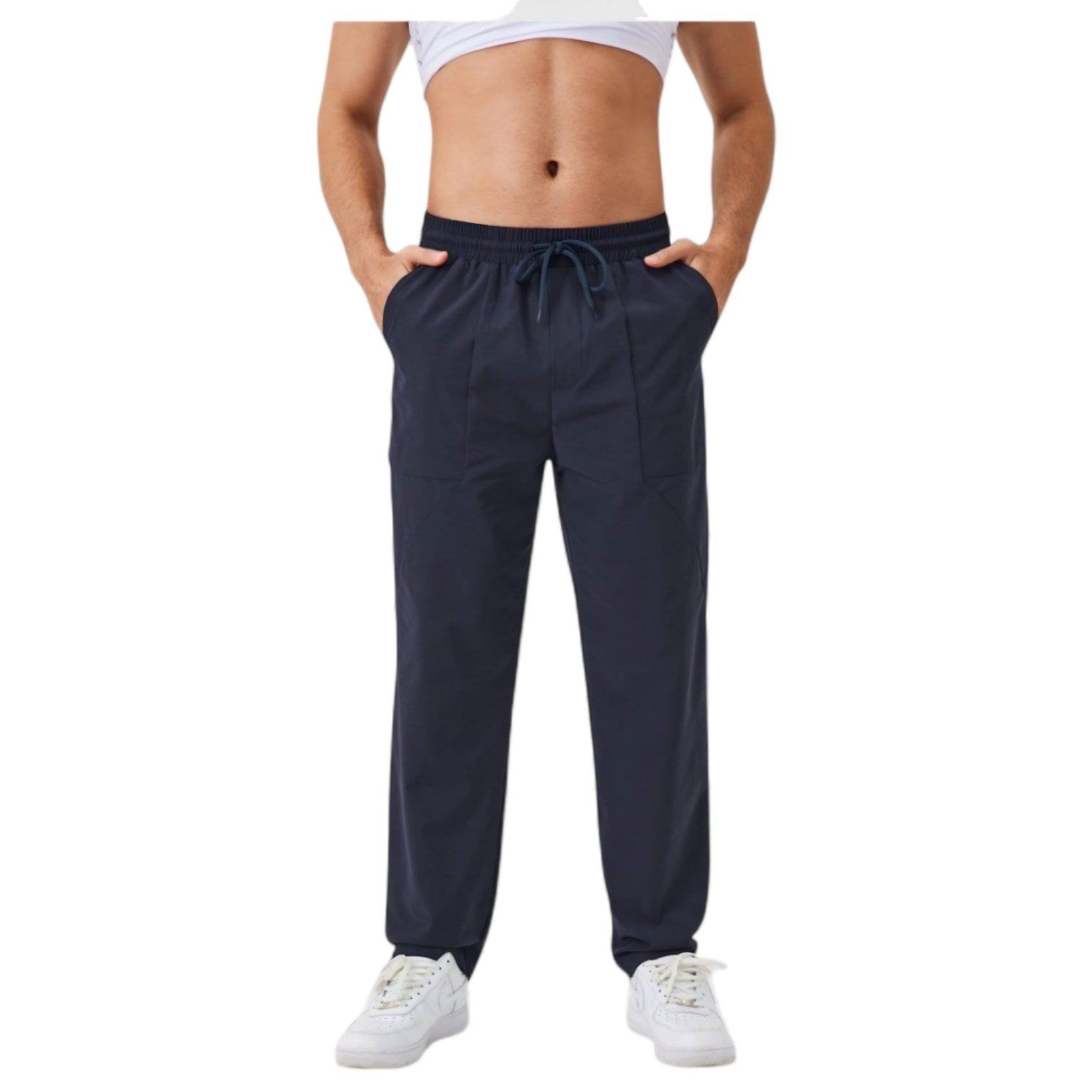 Men's Relaxed Fit Drawstring Pants with Patch Pockets and Elastic Waistband for Casual Wear