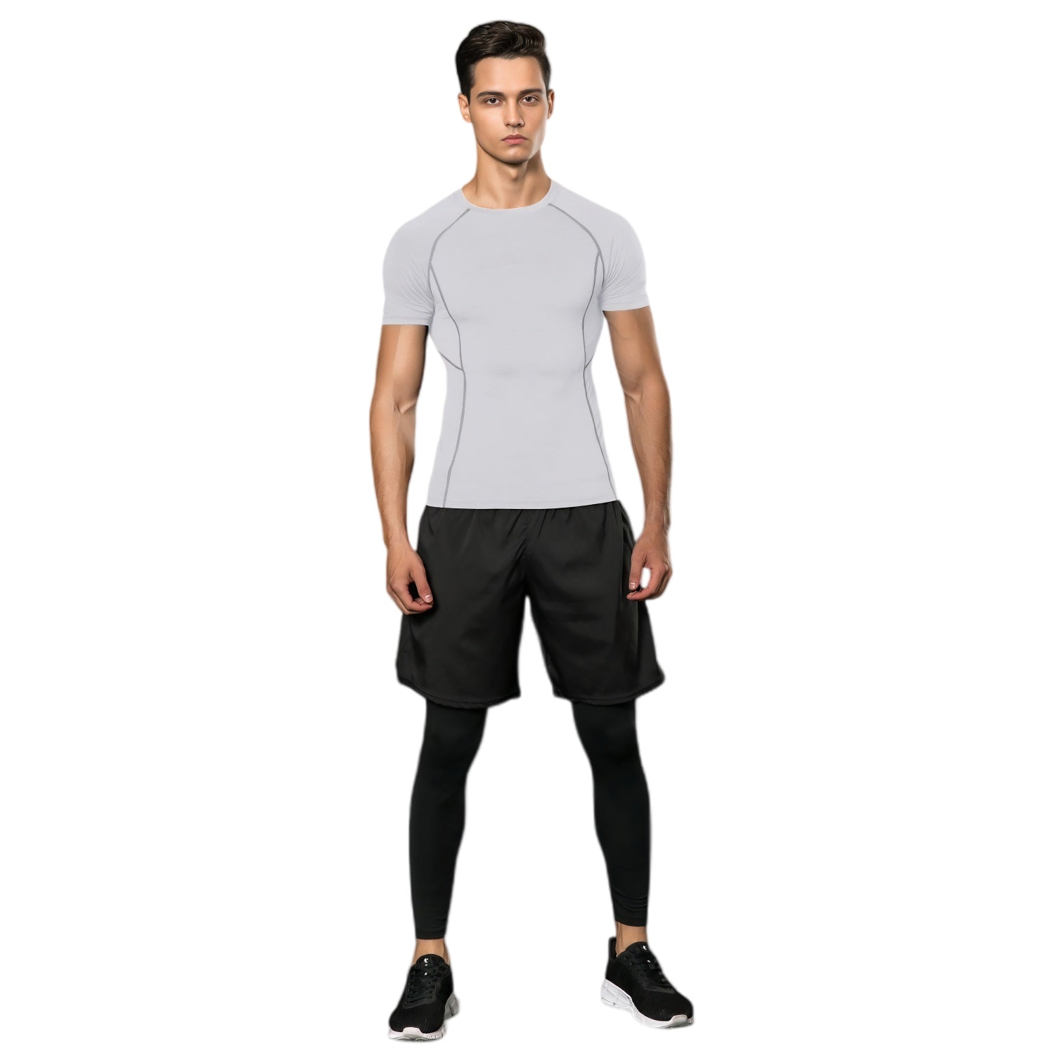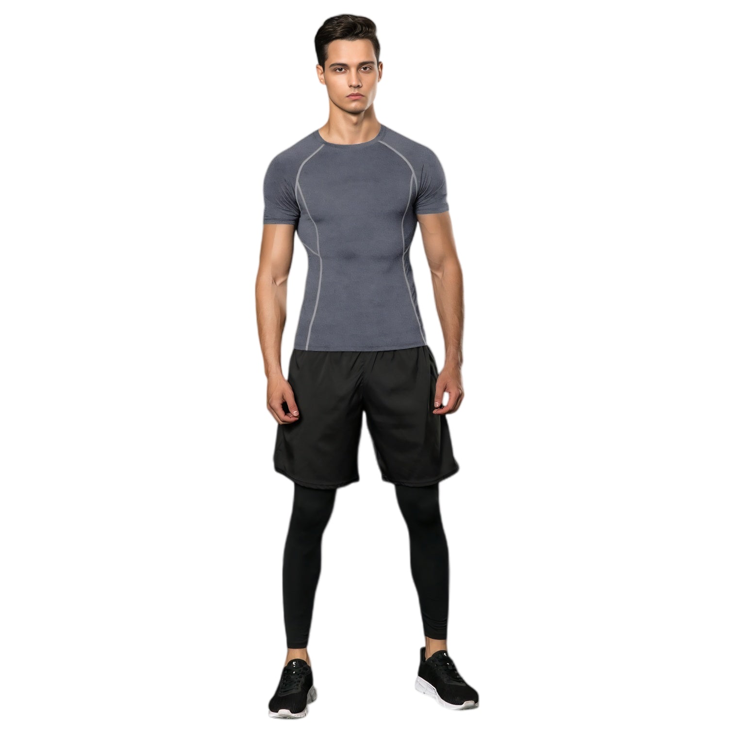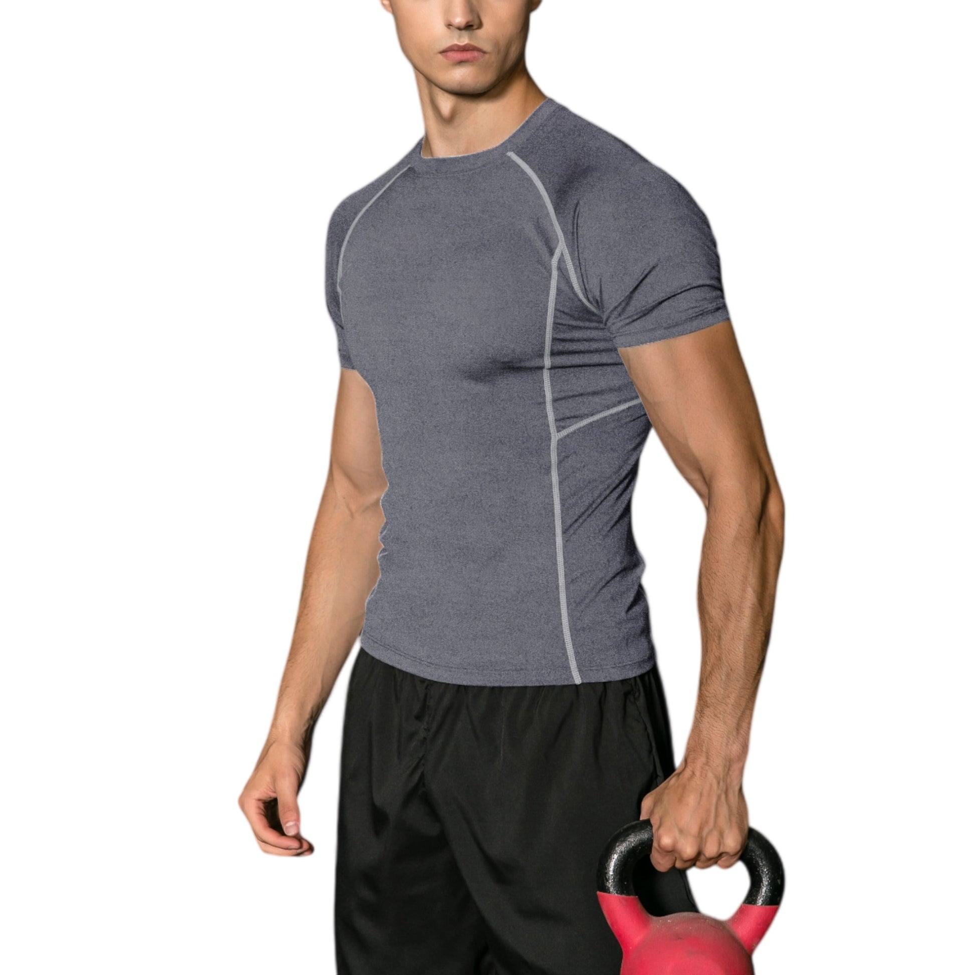 Men's Short Sleeve Compression Workout Shirt with Moisture-Wicking Fabric and Contrast Stitching