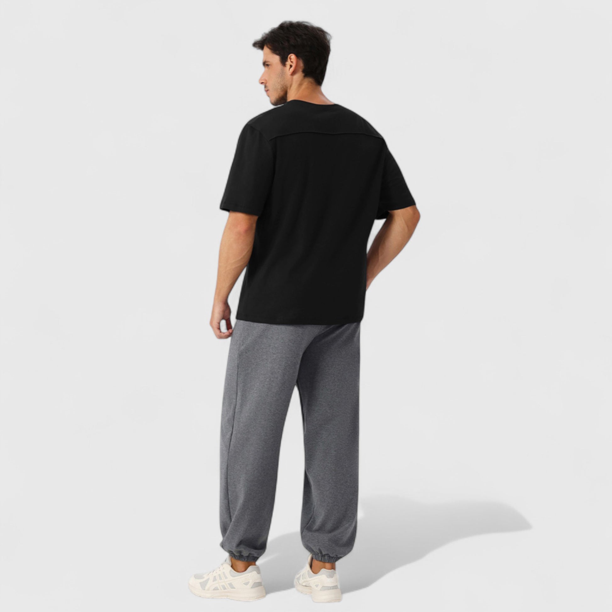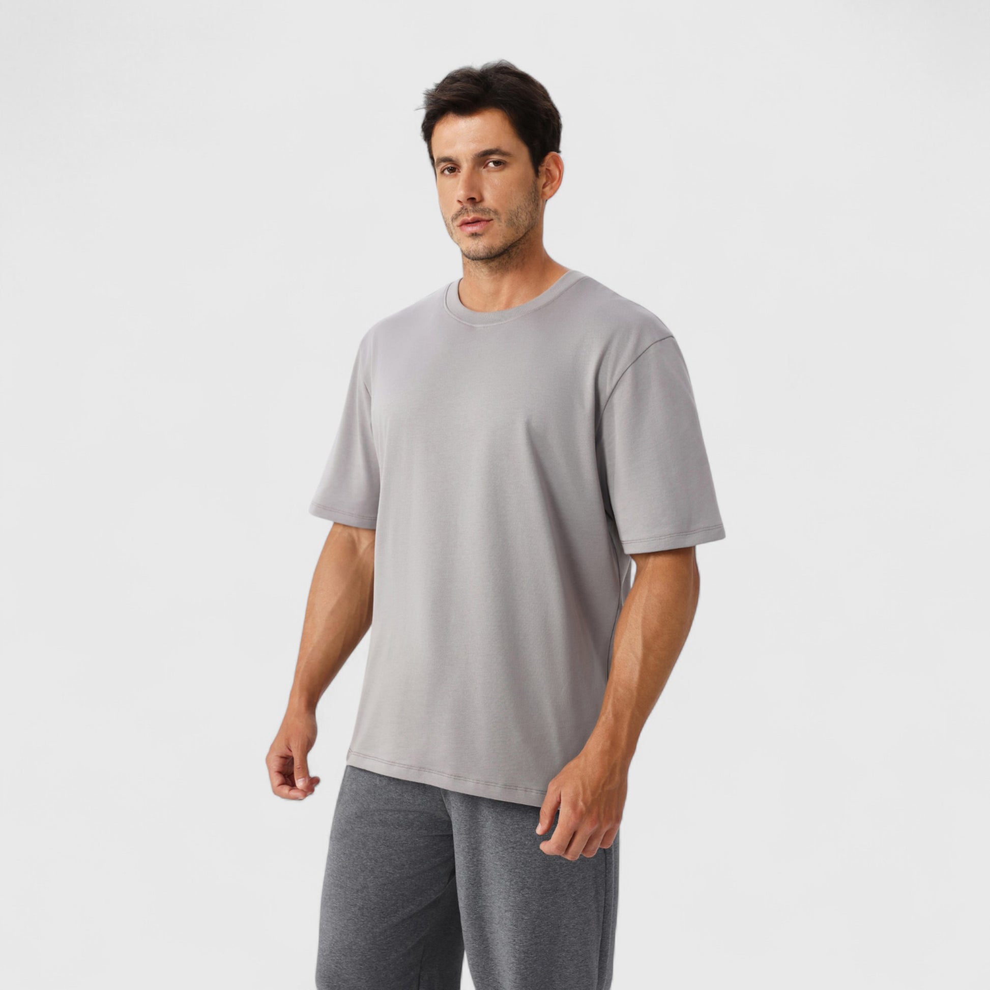 This men's oversized short sleeve t-shirt features a relaxed fit with drop shoulders and a clean, minimalist design. The wide-cut silhouette provides effortless comfort and a casual look. Ideal for everyday styling, it pairs easily with joggers, shorts, or jeans for a laid-back vibe. A wardrobe staple that balances simplicity and style.