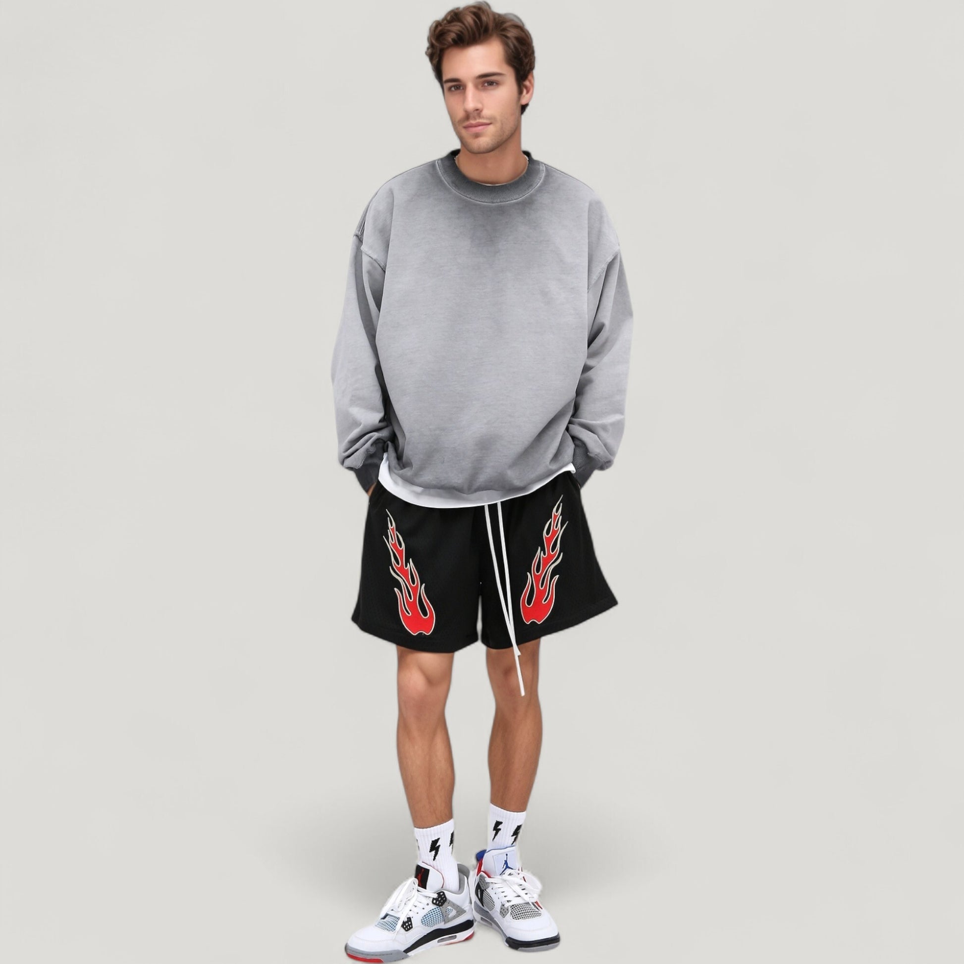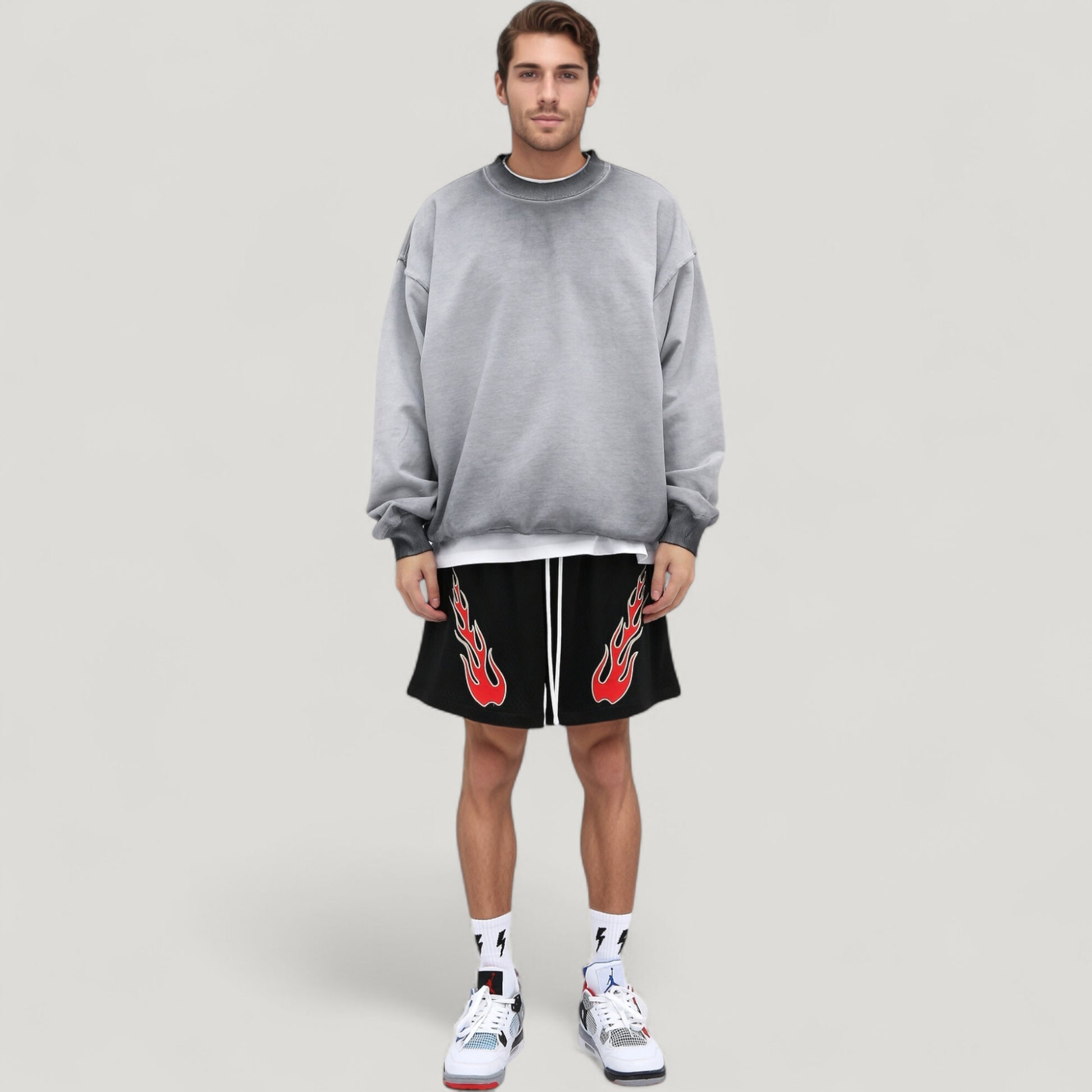 Men's Oversized Crew Neck Long Sleeve Sweatshirt with Dropped Shoulders and Relaxed Fit